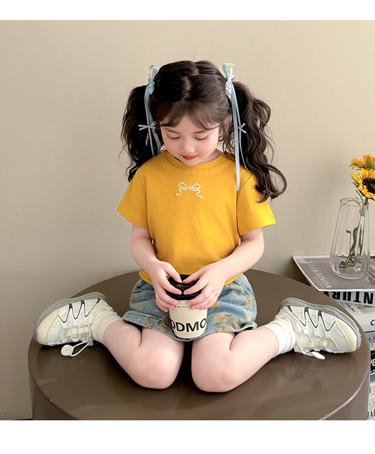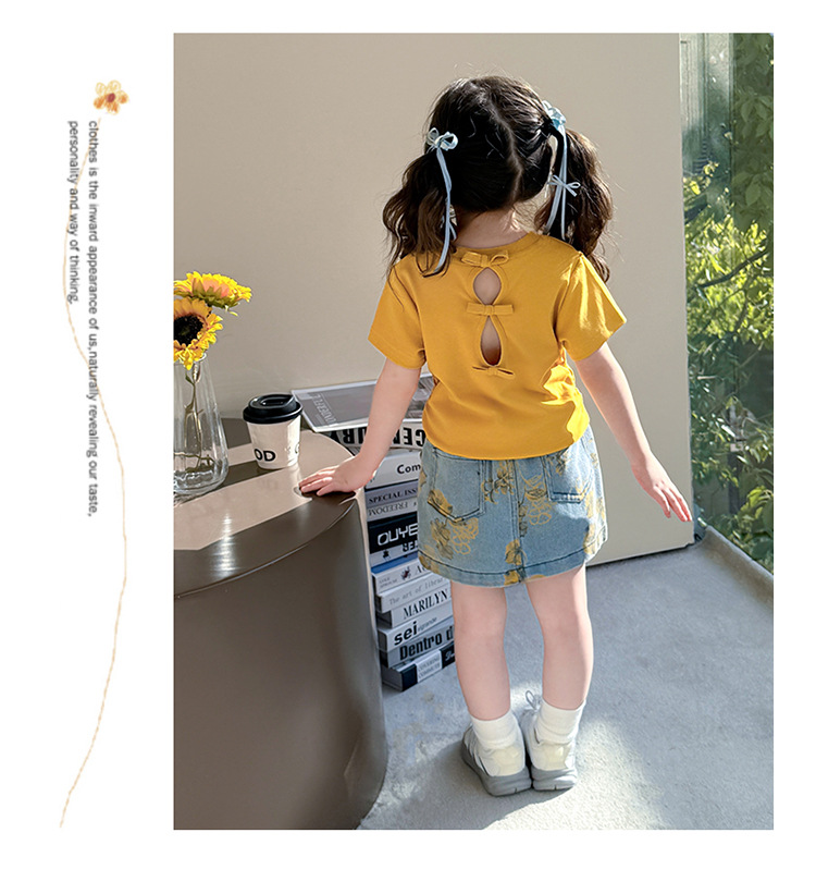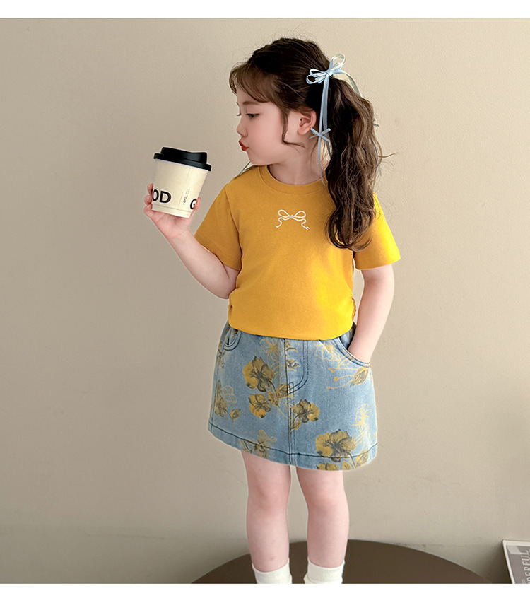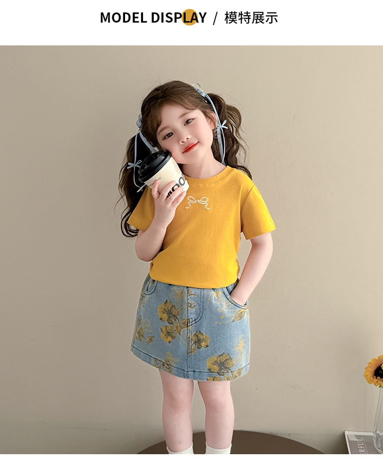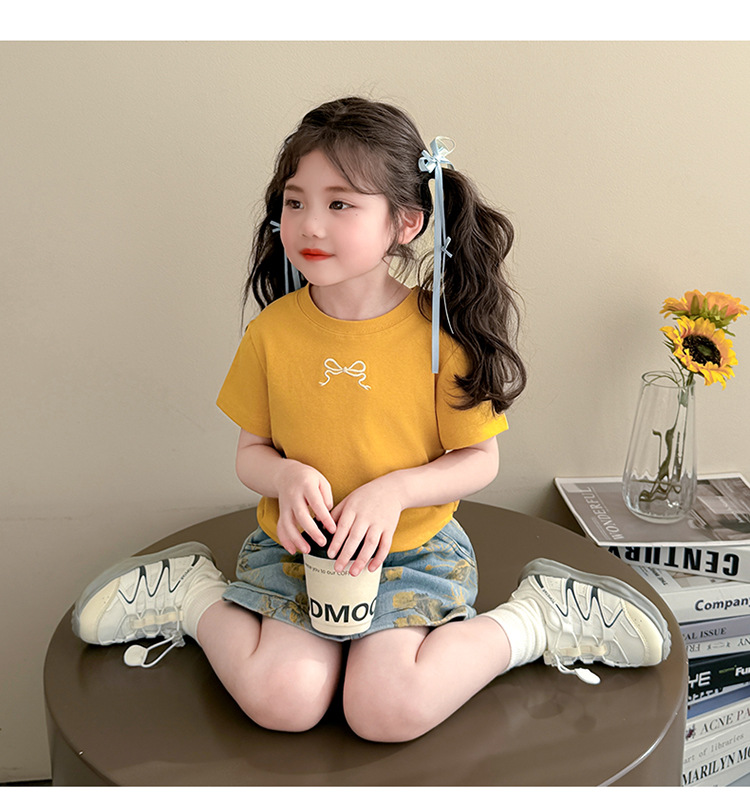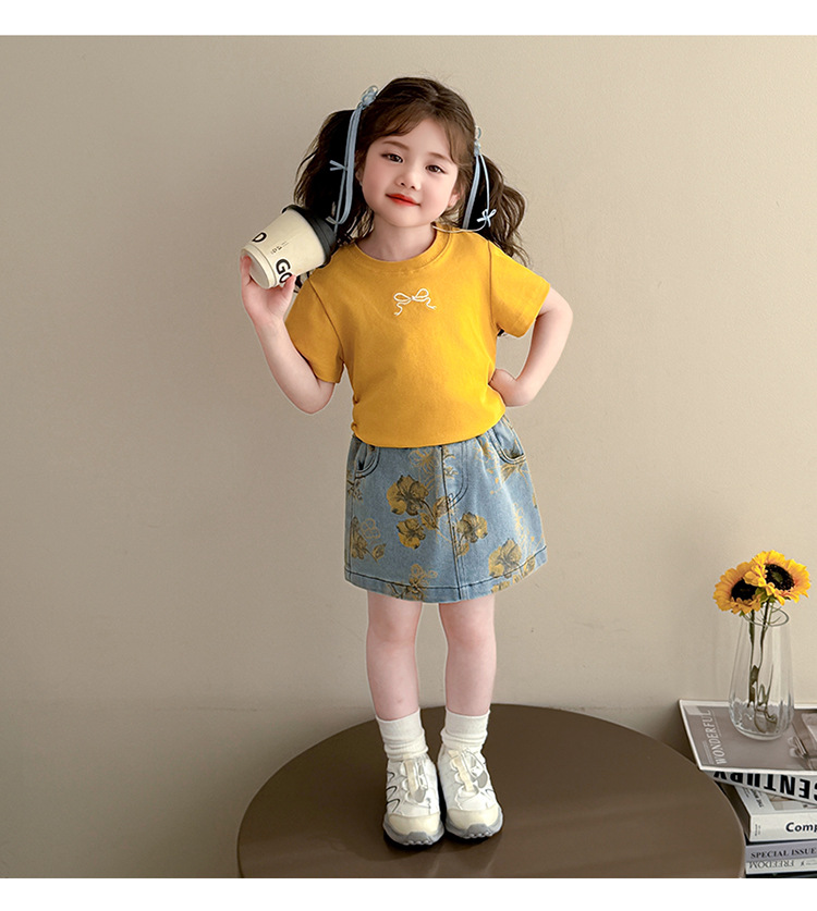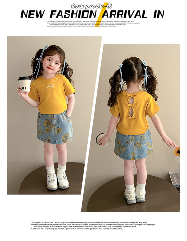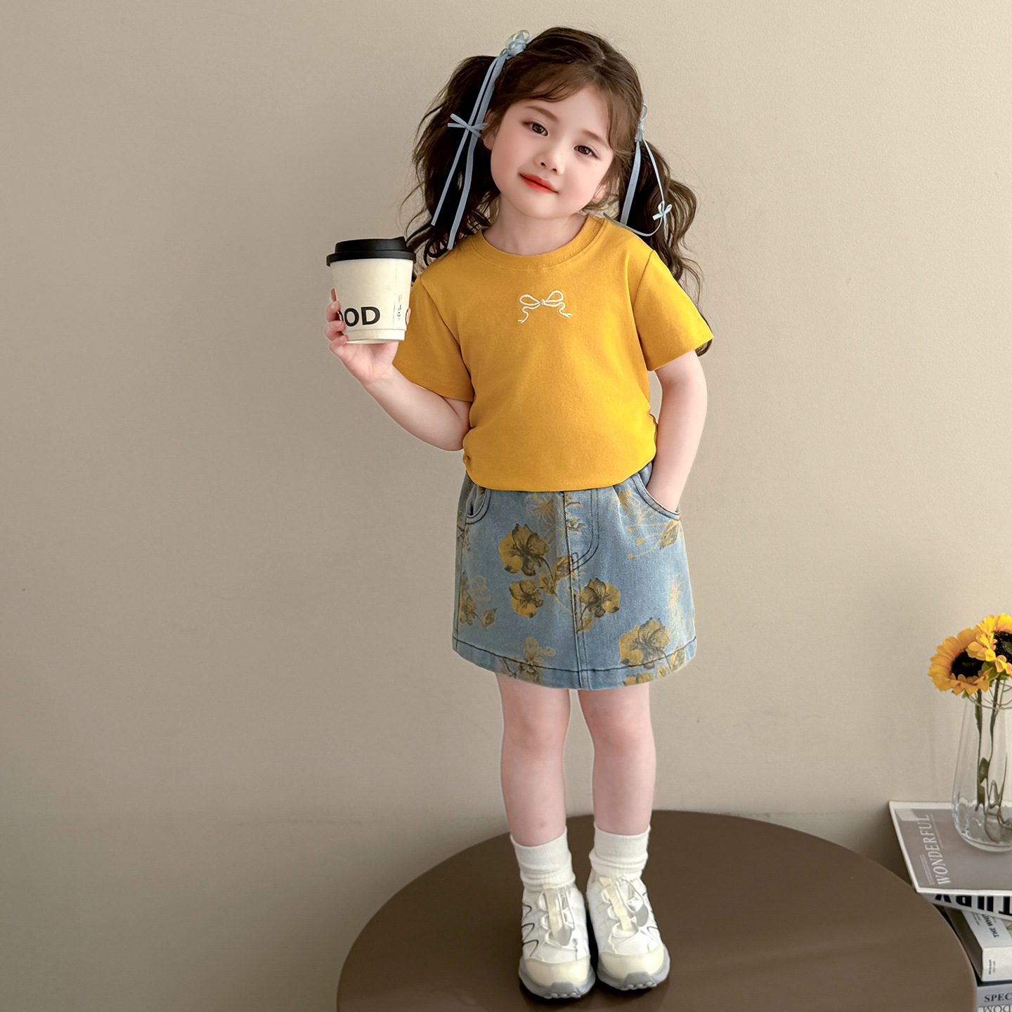 2026년 신상 여아 리본 데님 스커트 세트, 아동 패션, 여아용 세련된 투피스 여름옷스토어 가기