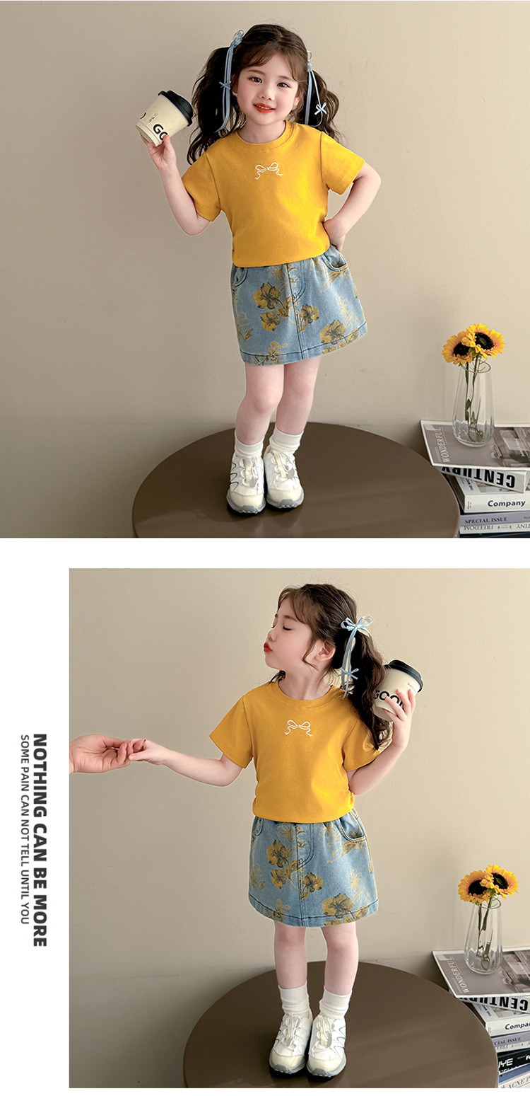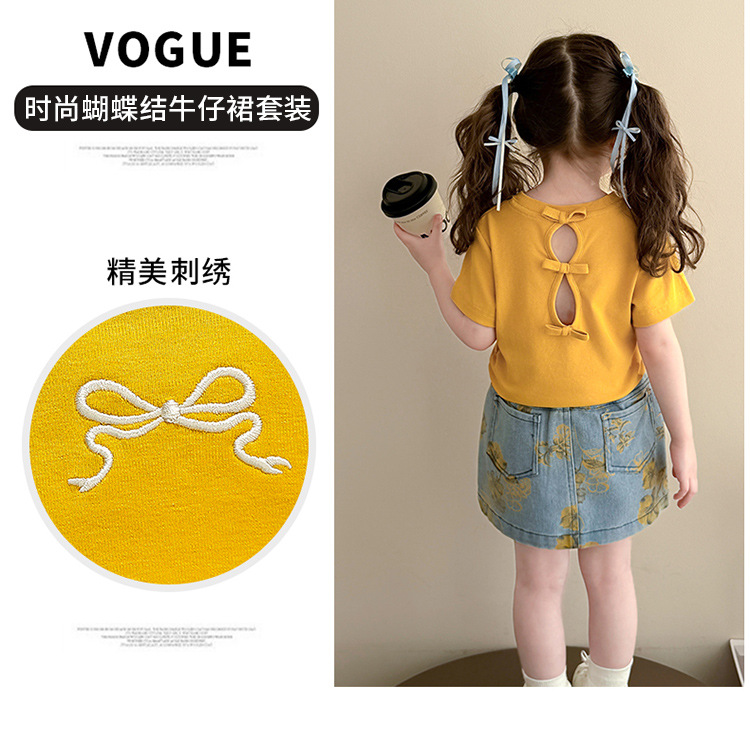 2026년 신상 여아 리본 데님 스커트 세트, 아동 패션, 여아용 세련된 투피스 여름옷