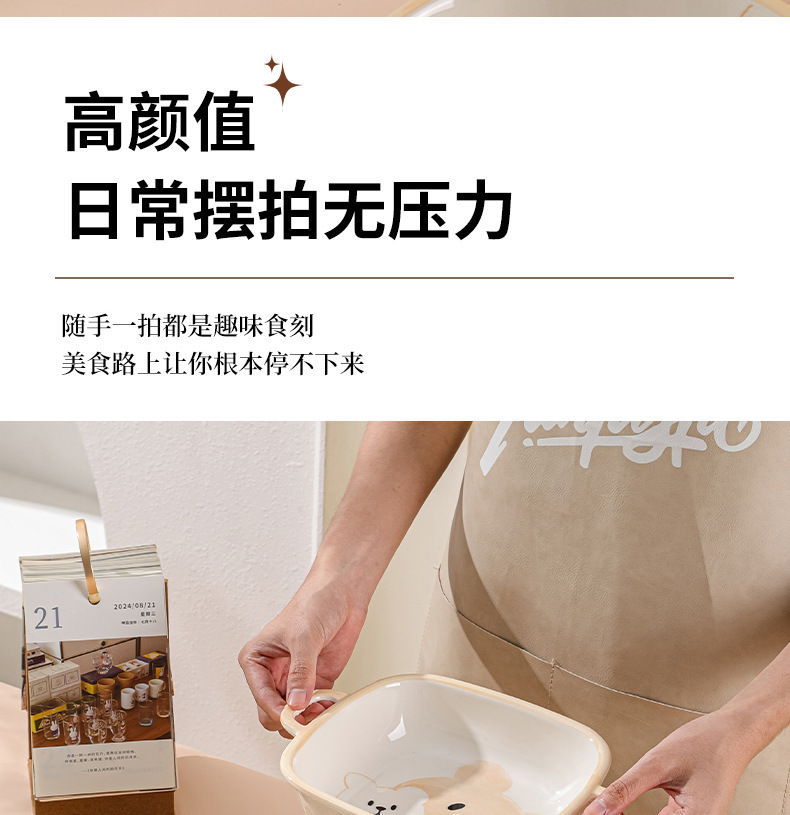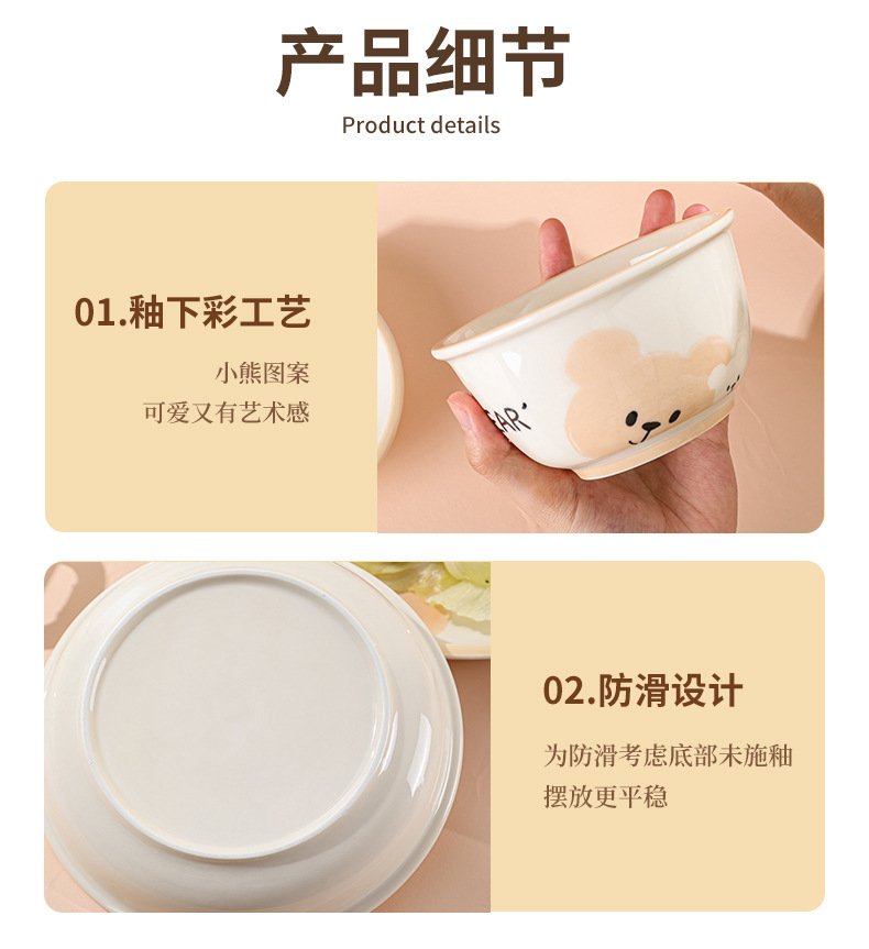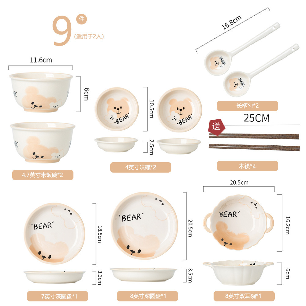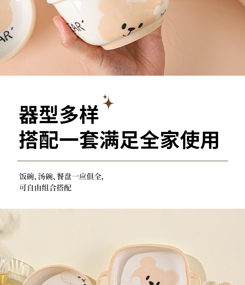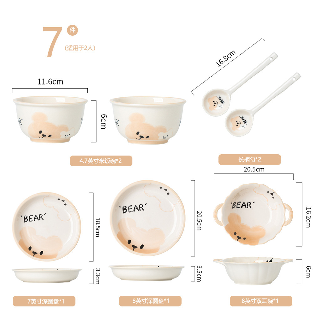 유약 컬러 만화 세라믹 그릇과 접시 식기 세트 귀여운 크림 스타일 가정용 쌀 수프 그릇 고온 방지 생선 접시