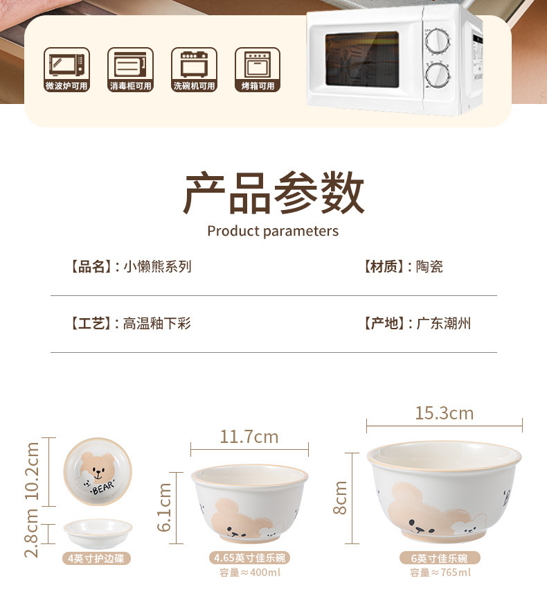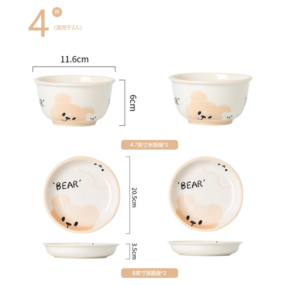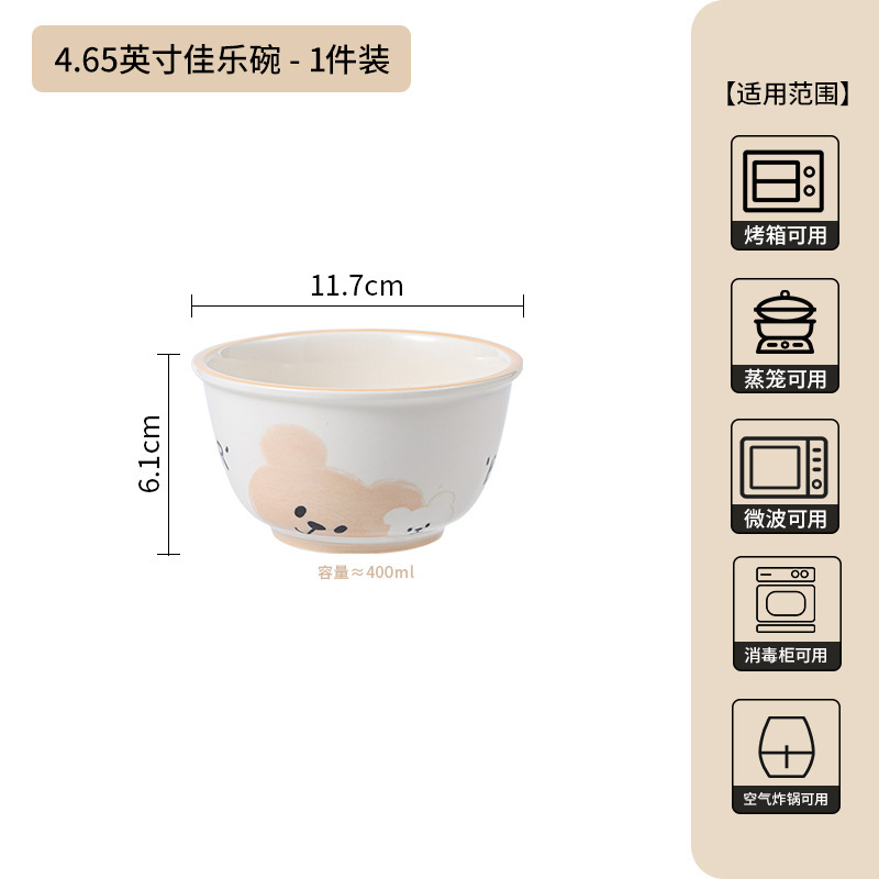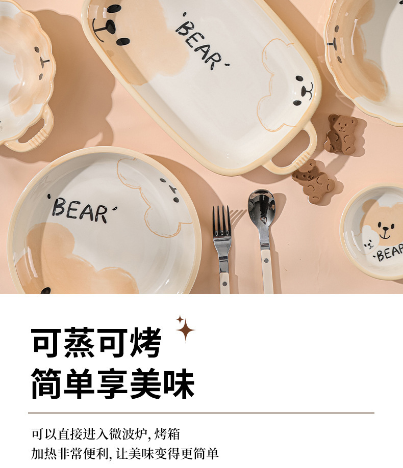 유약 컬러 만화 세라믹 그릇과 접시 식기 세트 귀여운 크림 스타일 가정용 쌀 수프 그릇 고온 방지 생선 접시스토어 가기