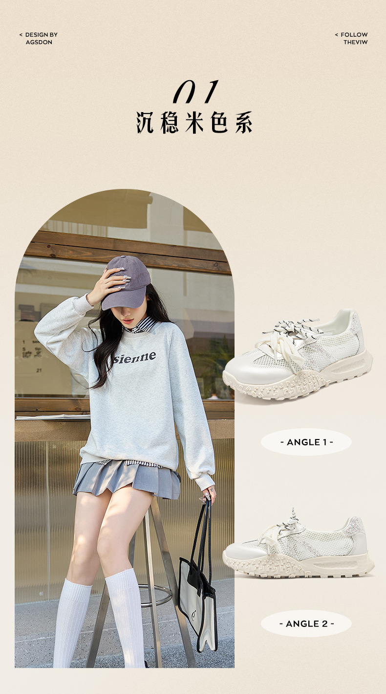 여성을위한 Augushiden 흰색 신발 2025 새로운 여름 얇은 중공 메쉬 Forrest Gump 훈련 신발 두꺼운 밑창 운동화