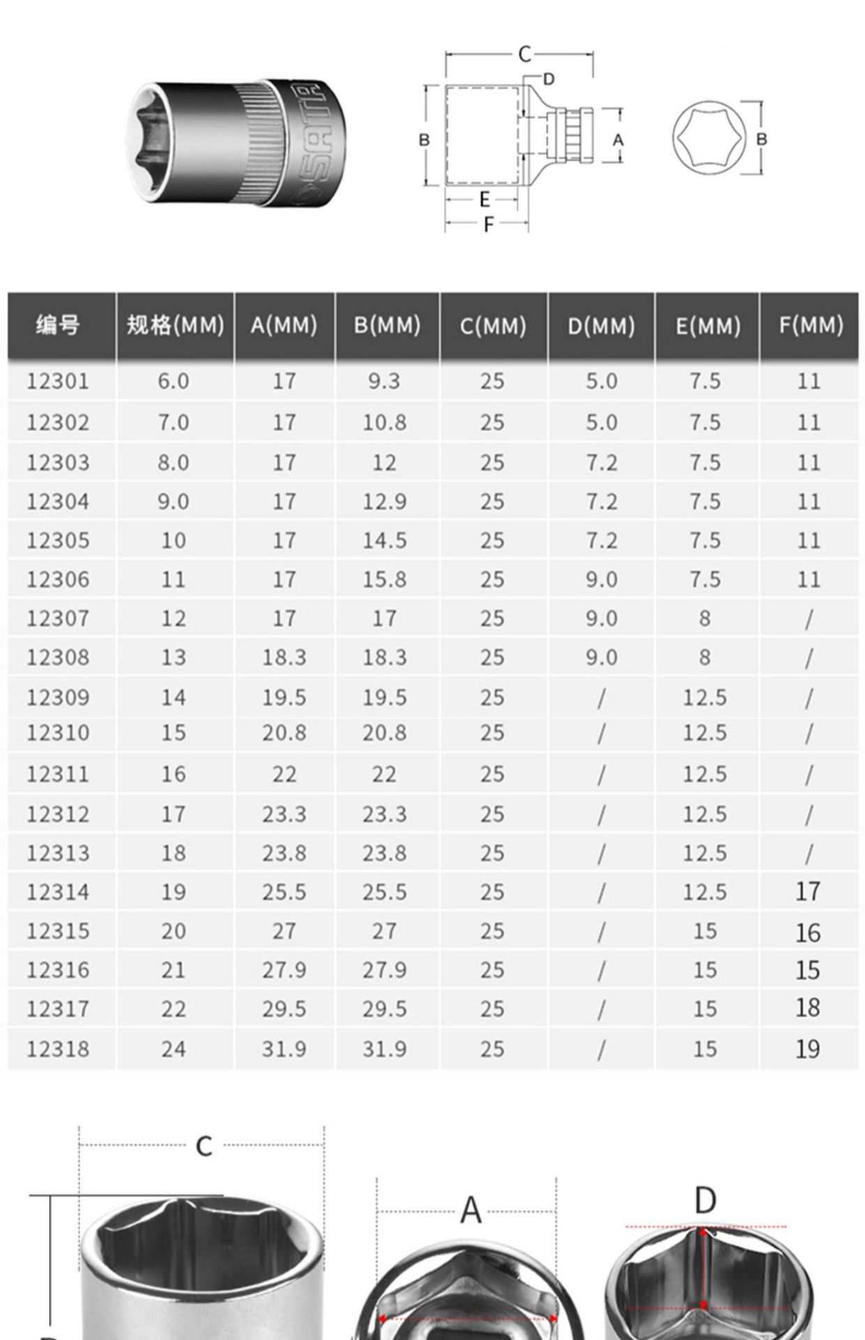 Shida 소켓 Xiaofei 1/4 Zhongfei 3/8 Daofei 1/2 육각형 짧은 푸시업 자동 수리 도구 전기 렌치