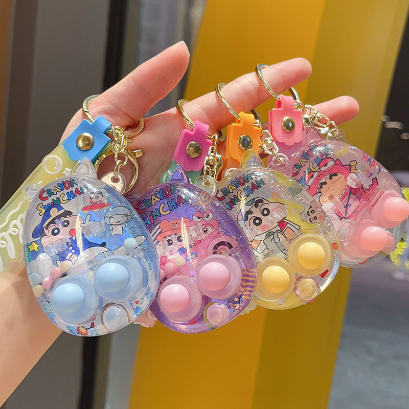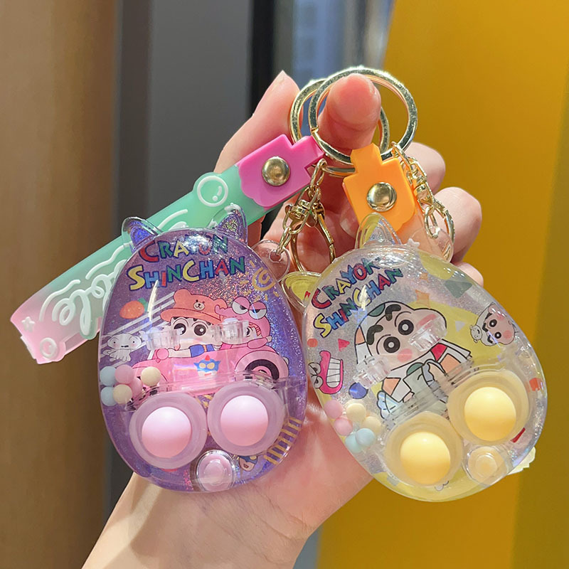 카피 수중 슈팅 게임 콘솔 키 체인 크레용 신짱 귀여운 액체 휴대용 게임 콘솔 선물 펜던트