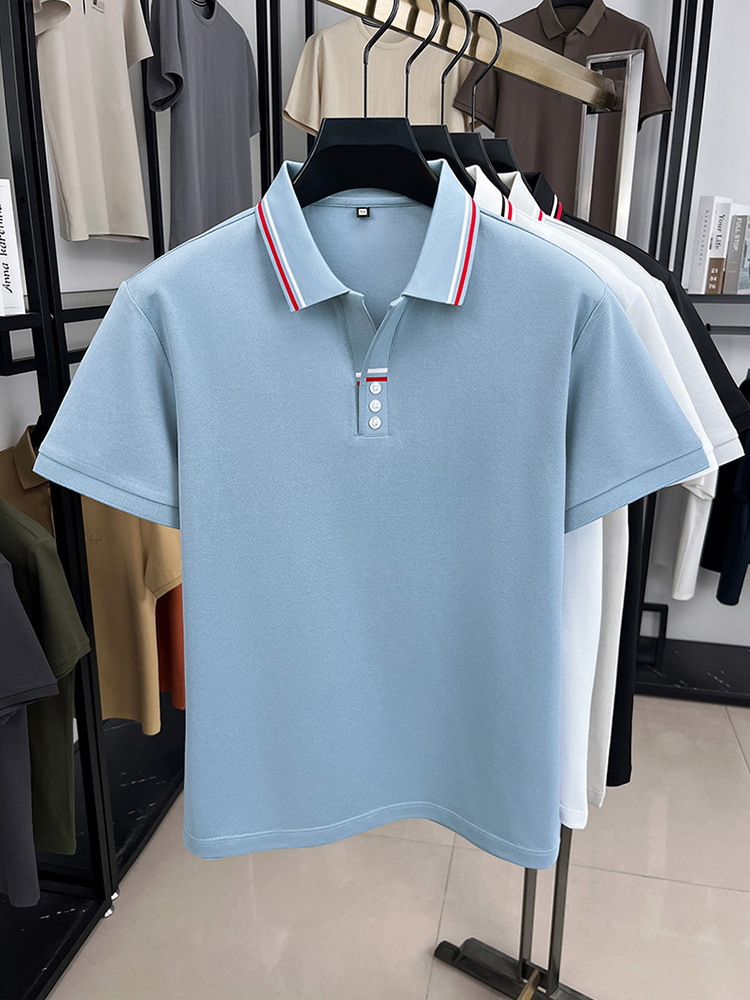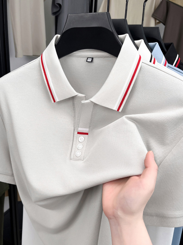 夏季高级感桑蚕丝男士POLO衫短袖翻领休闲百搭商务男装有领t恤男