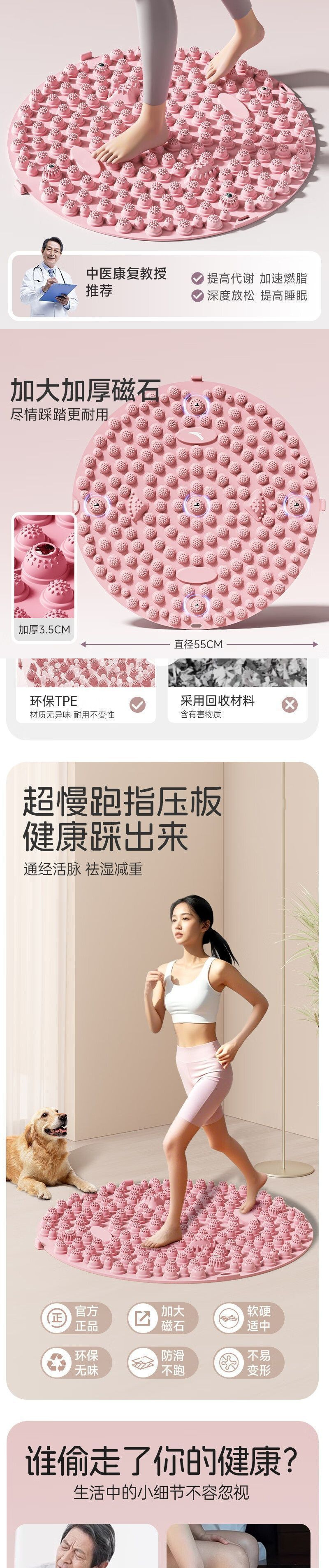지압판, 한의학 원형 슈퍼 조깅 발 마사지 매트, 실내 조깅 매트, 마사지 독립 스테이션