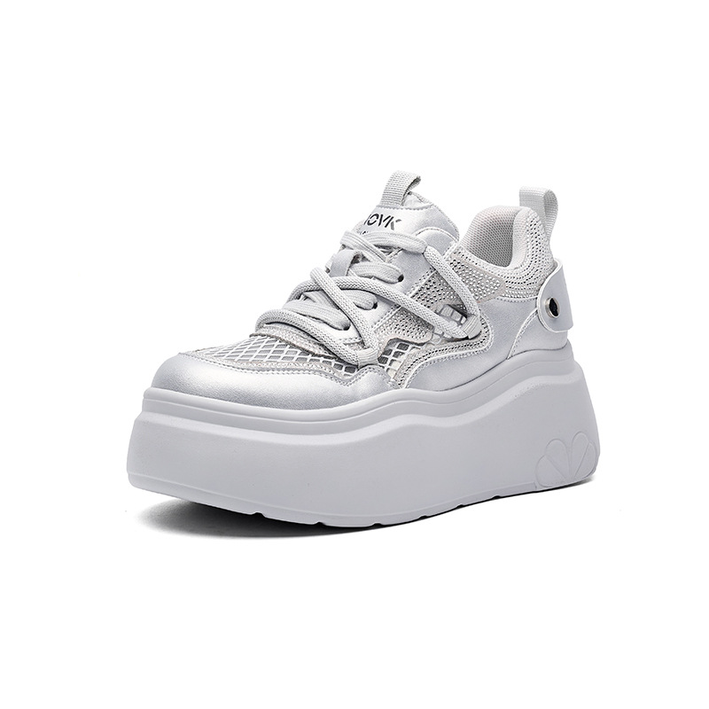 여름 틈새 두꺼운 밑창으로 인기 있는 여성용 메쉬 통기성 흰색 신발 2025 새로운 캐주얼 플랫 신발스토어 가기
