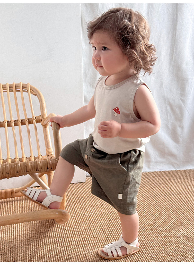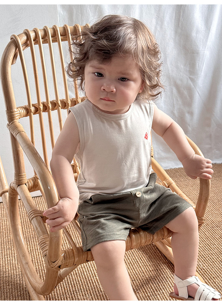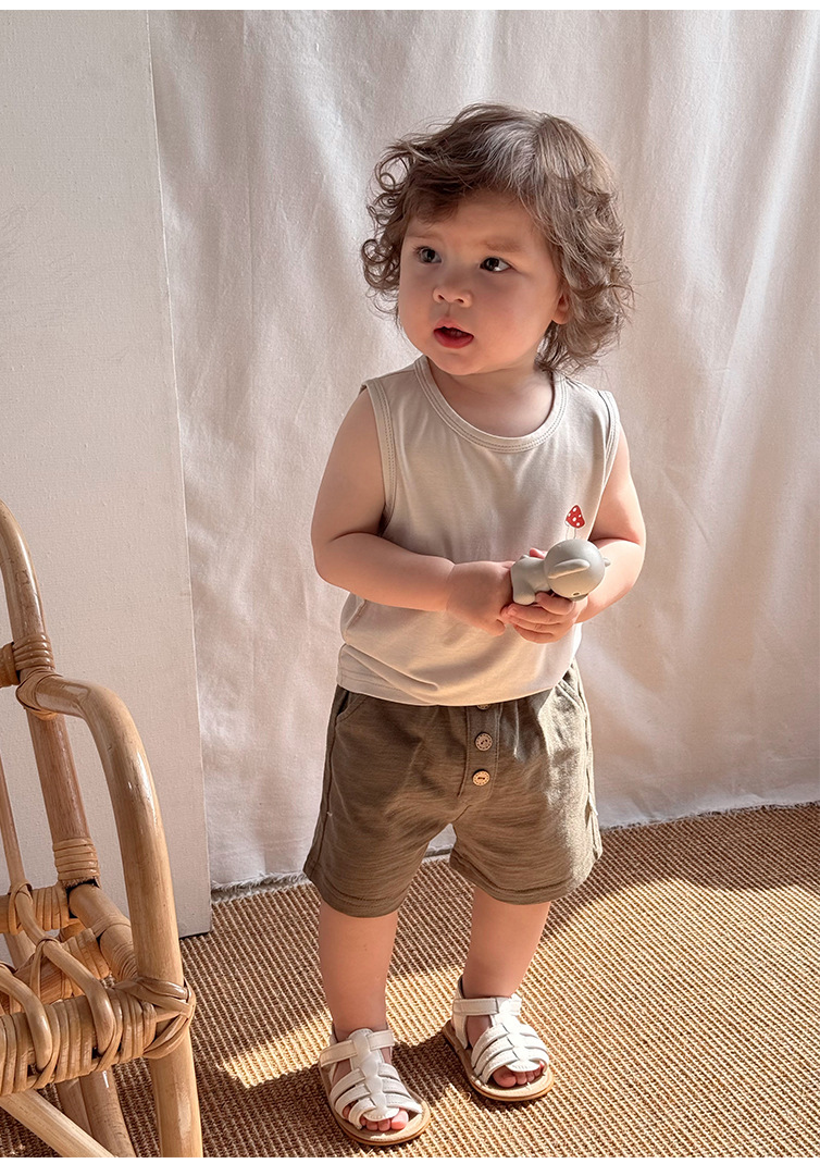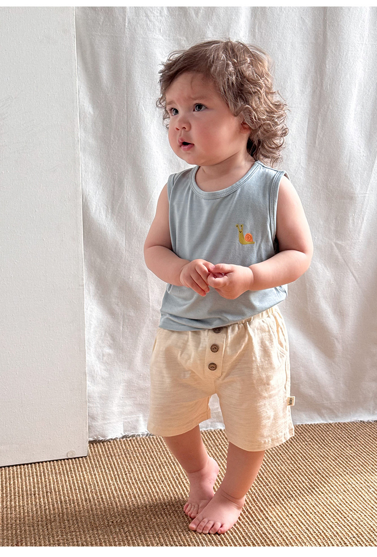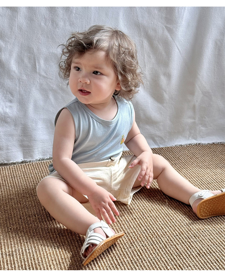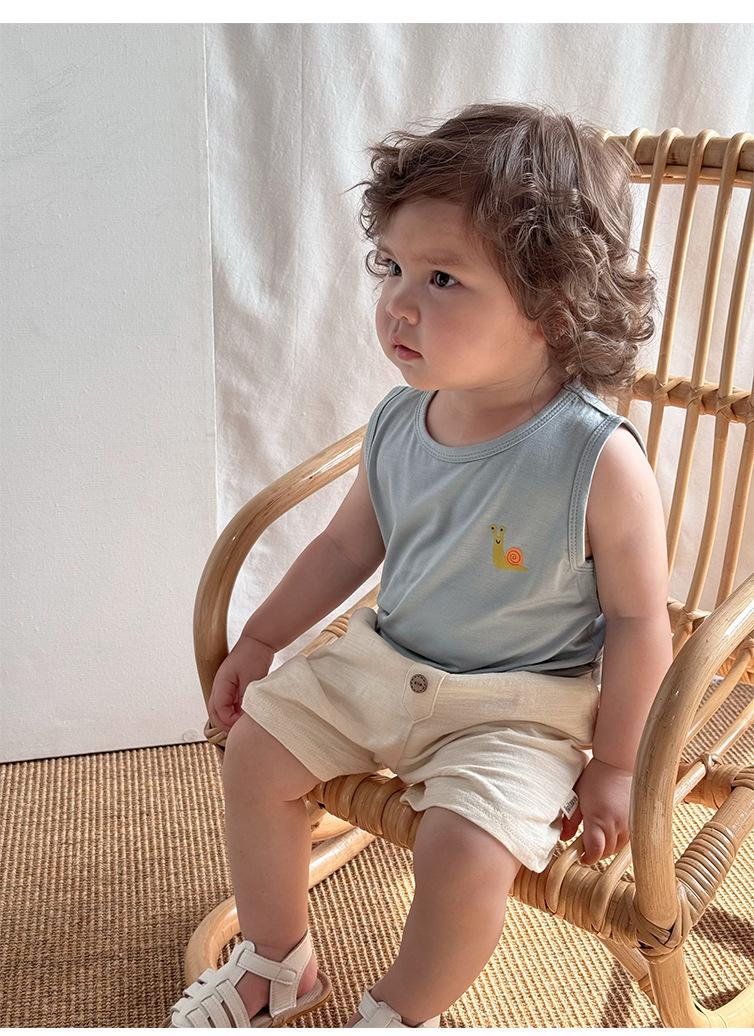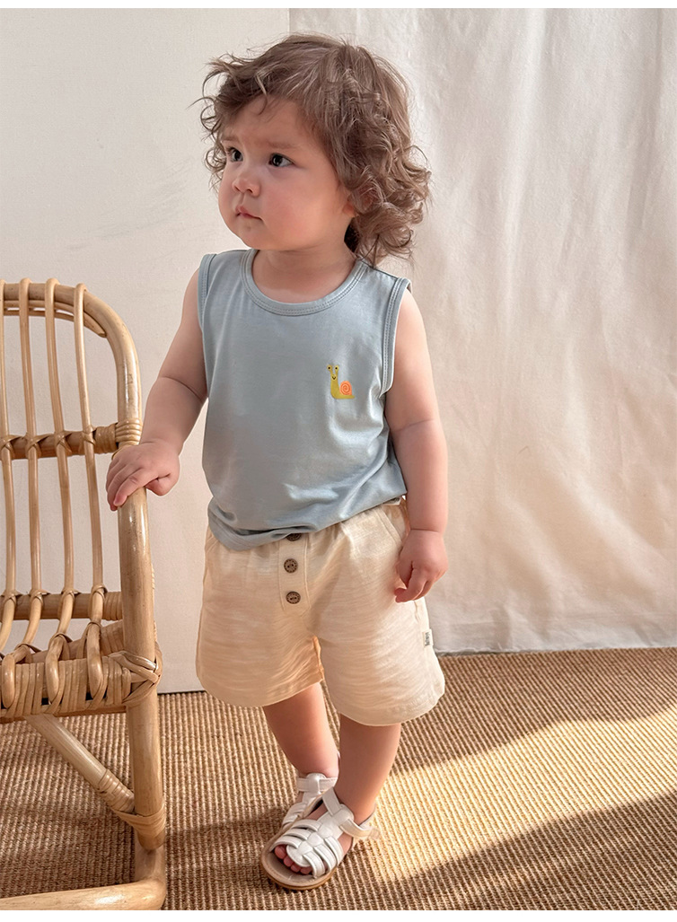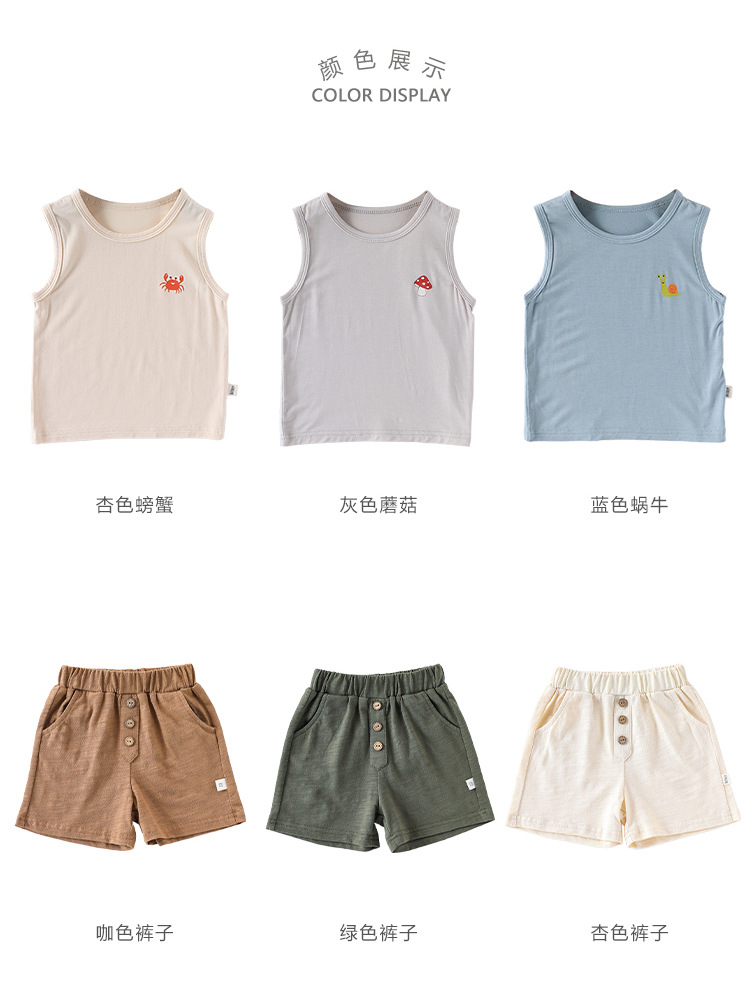 2025 여름 베이비 조끼 탑 소년과 소녀 유행 겉옷 세트 베이비 모달 민소매 티셔츠 반바지스토어 가기