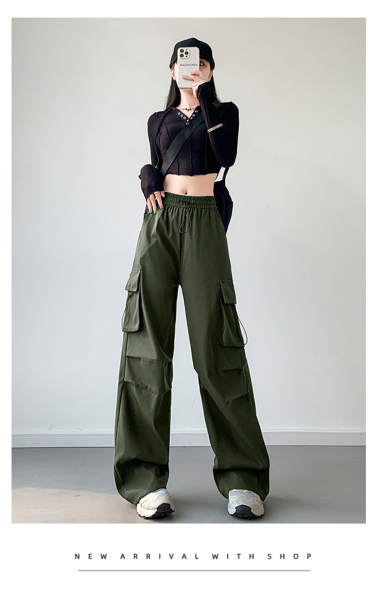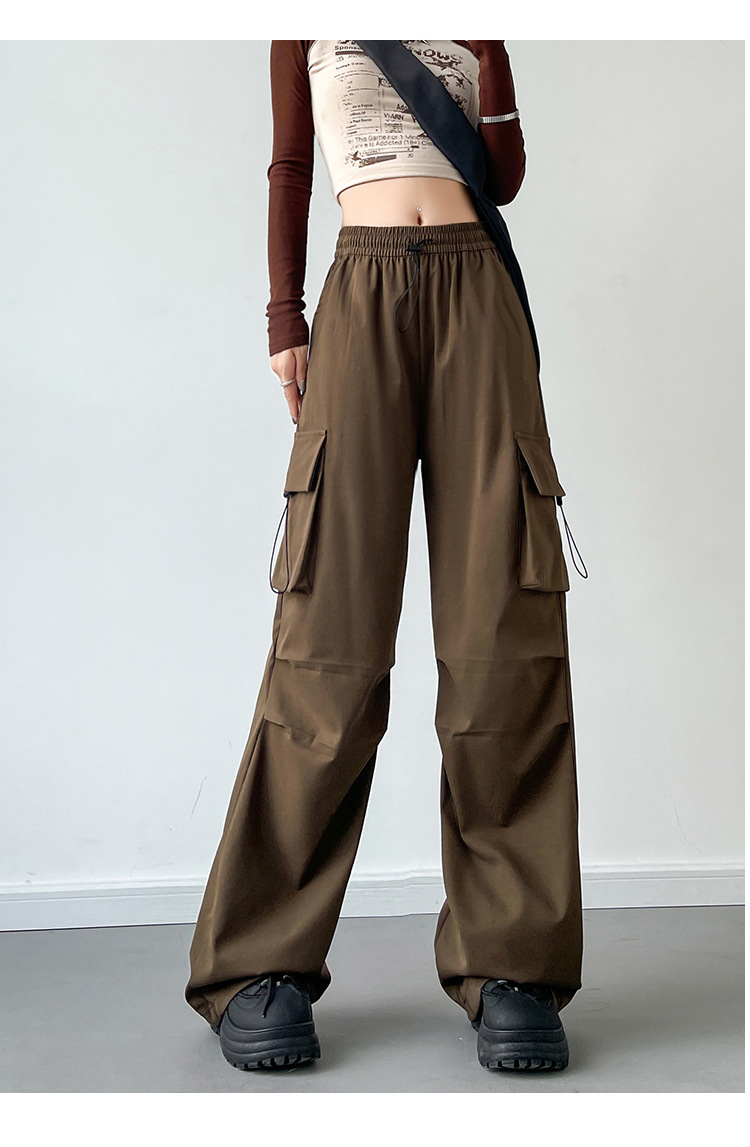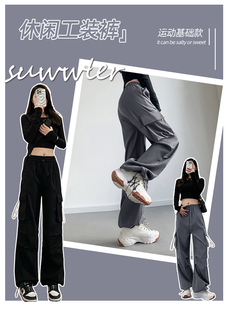 여성용 카고 팬츠 아메리칸 여름 얇은 2025 신작 캐주얼 스트레이트 하이 웨이스트 하이킹 와이드 팬츠스토어 가기