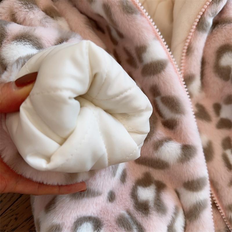 여아의 새로운 패셔너블한 겨울 스타일 대비 색상의 레오파드 프린트 플러스 벨벳 두꺼운 베이비 후드 코트 면 코트스토어 가기