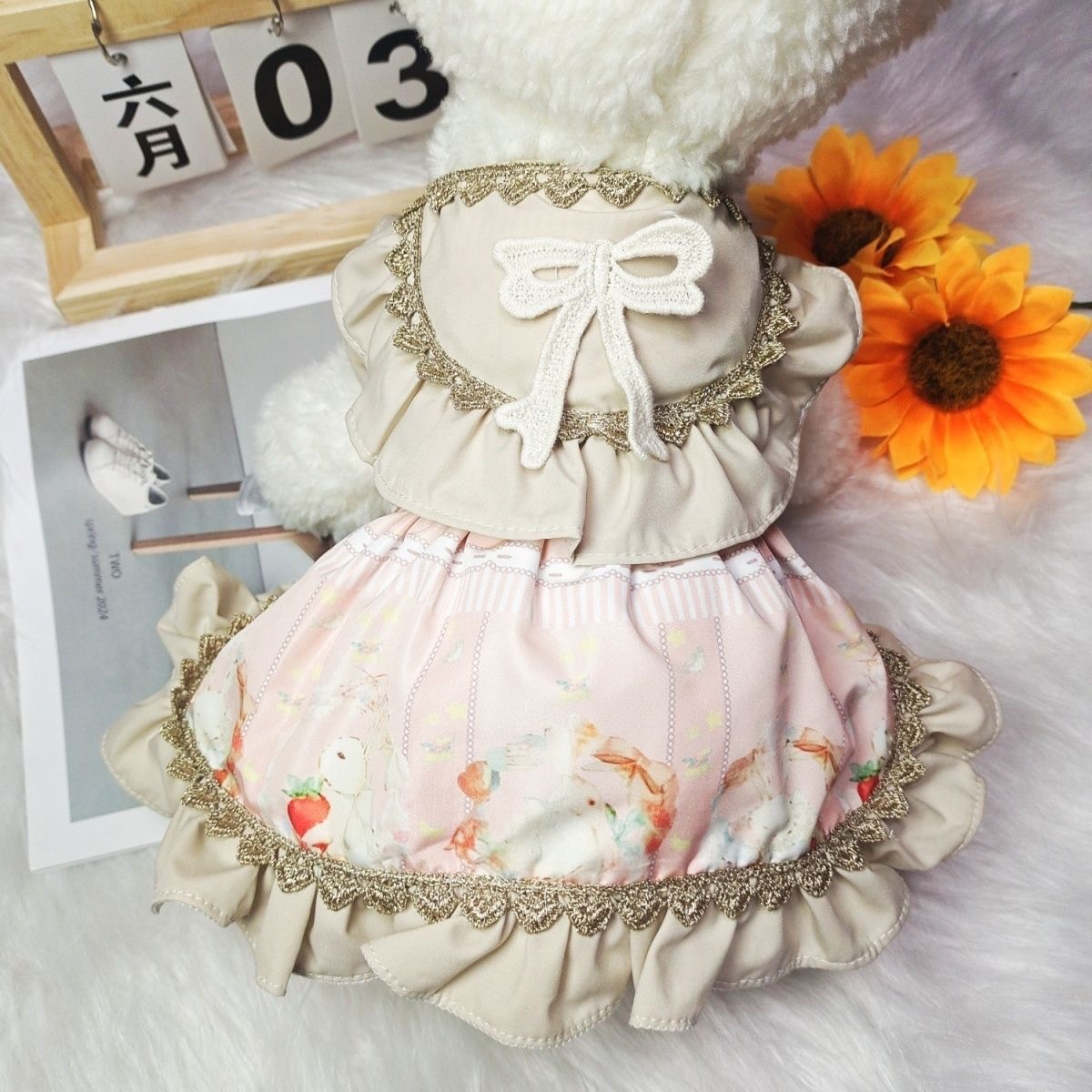 강아지 옷, 봄 여름 고양이 공주 드레스, 오뜨 꾸뛰르 로리타 금테 토끼, 소형견 테디 비숑 애완동물스토어 가기
