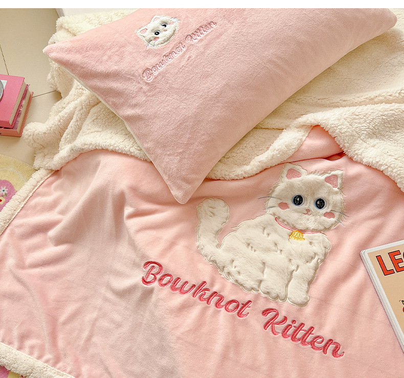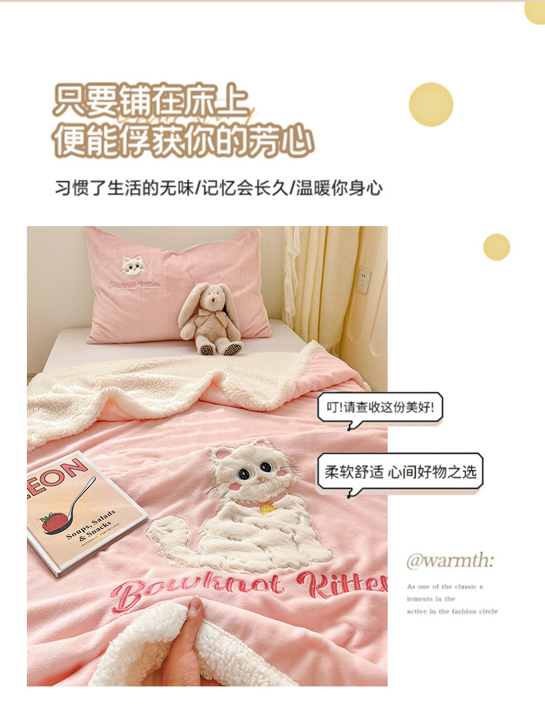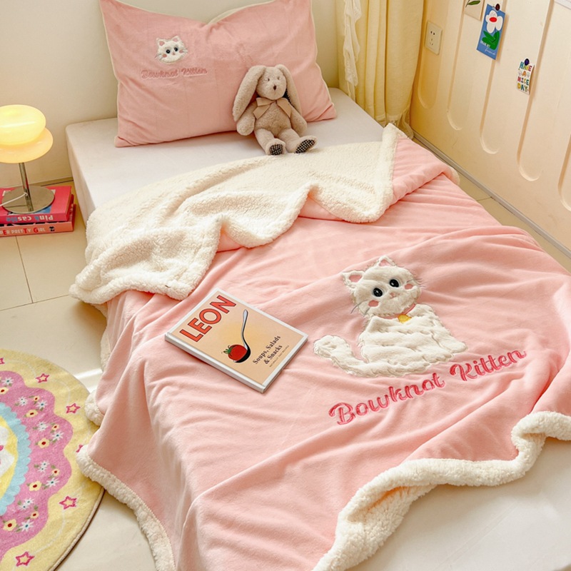 클래스 A 만화 토끼 모피 패치 수 놓은 고양이 우유 벨벳 램스울 담요 사무실 소파 어린이 에어컨 담요