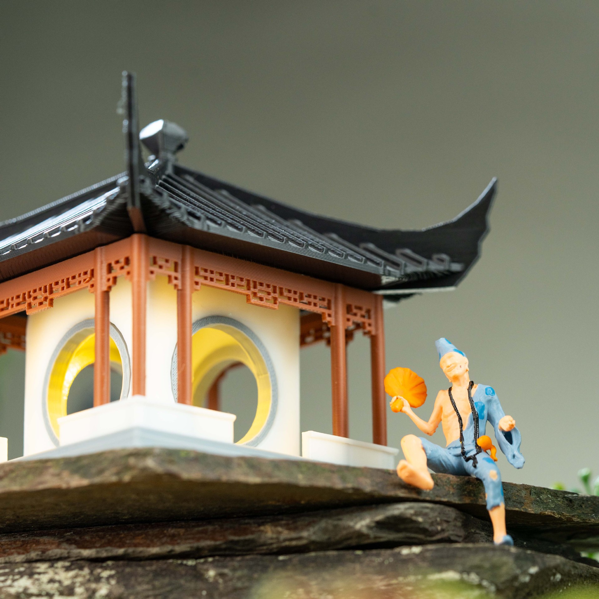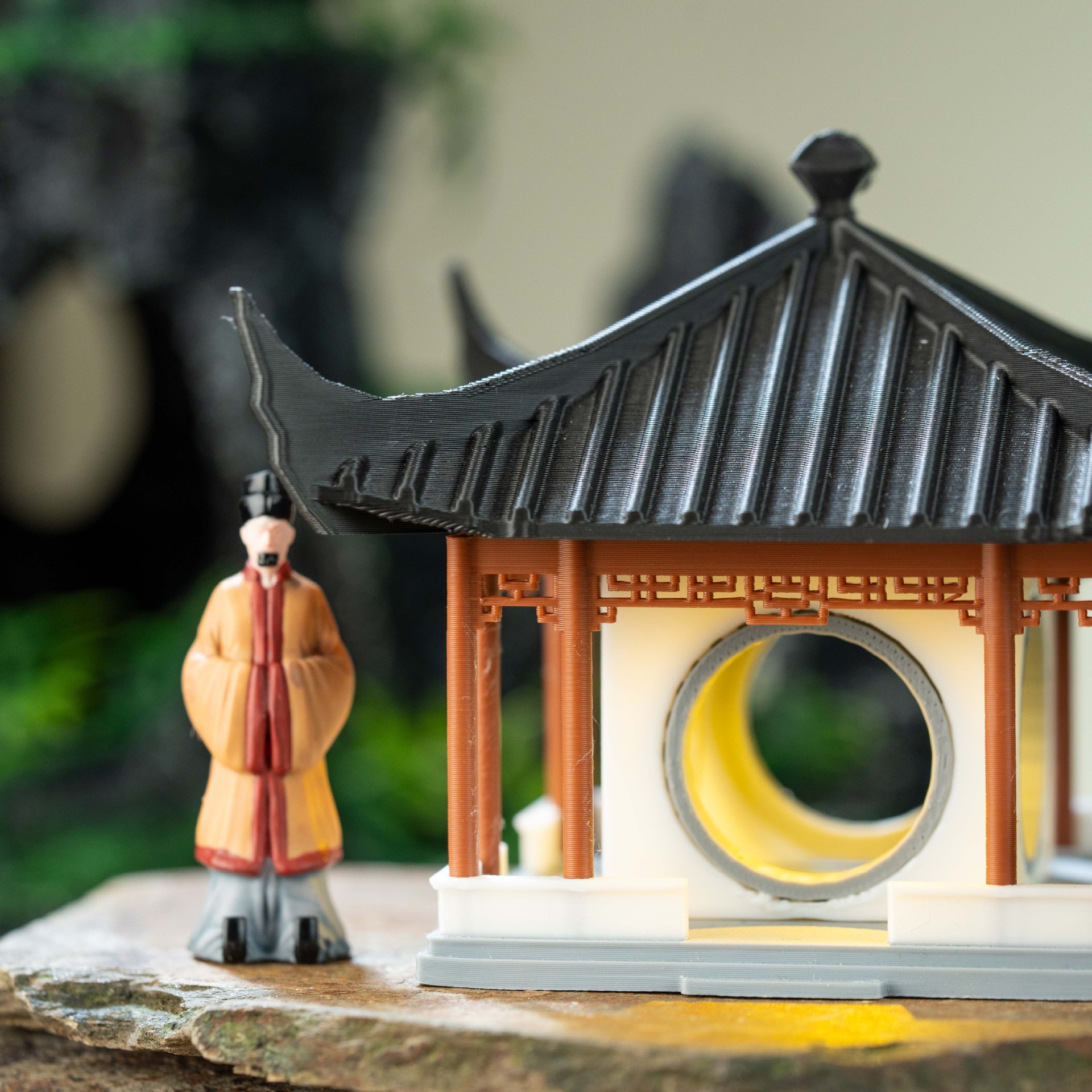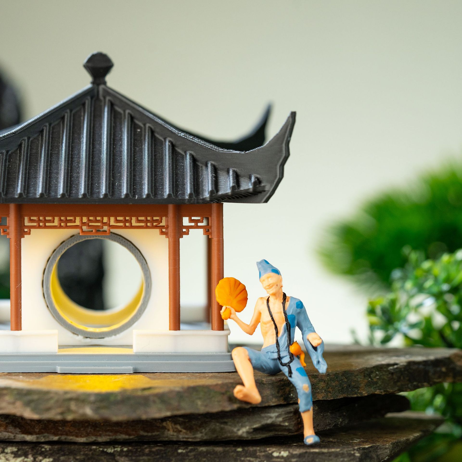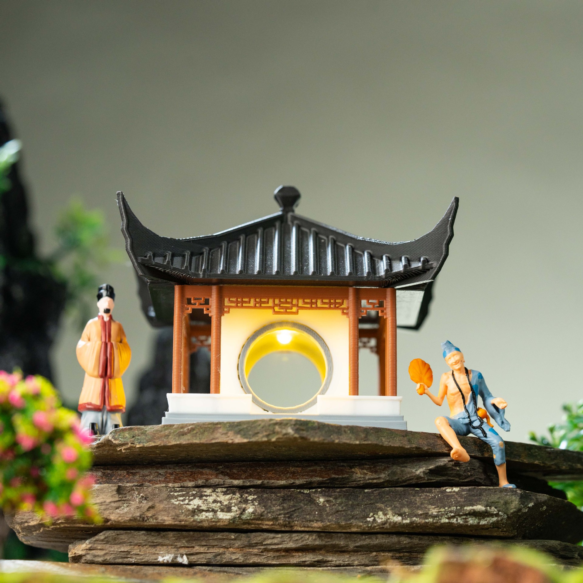 조명이 있는 마이크로 풍경 낚시대, 고대 건축물, 수조, 석가, 분재, 마이크로 풍경 조경, 장식용 가정용 수륙양용 수조