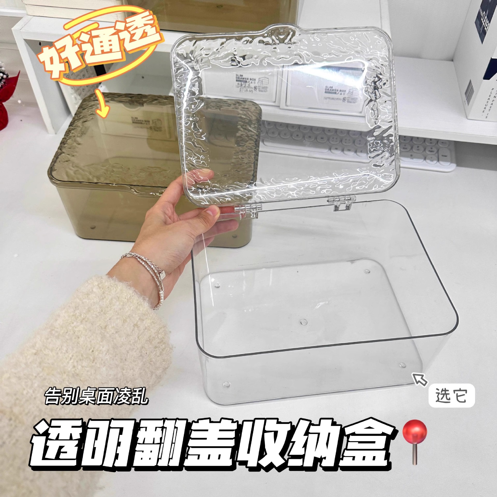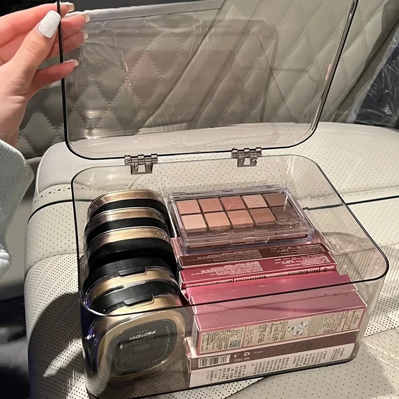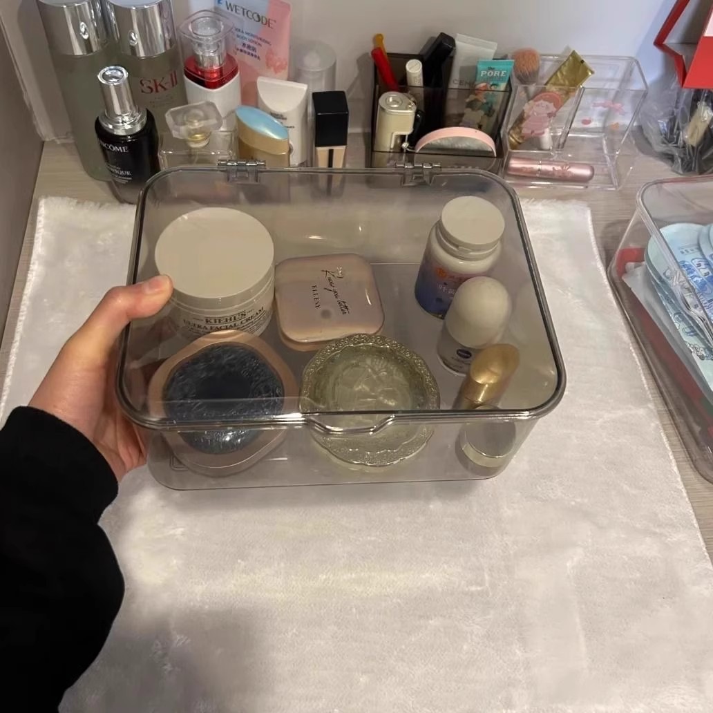 플립 탑 데스크탑 보관 상자 투명 아크릴 방진 정리 상자 침실 기숙사 사무실 뚜껑이있는 잔해 바구니