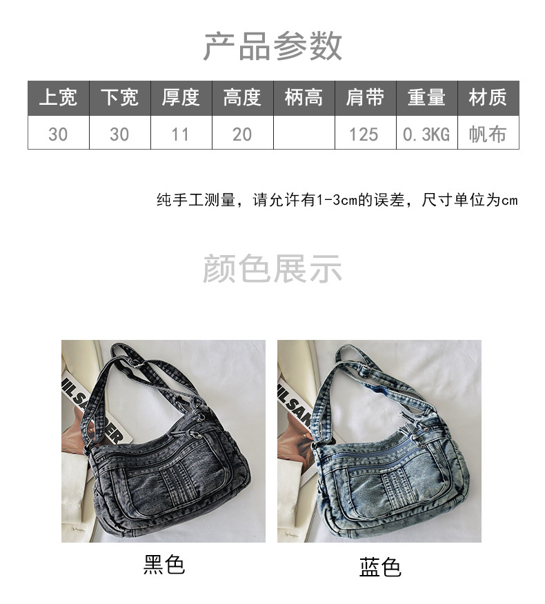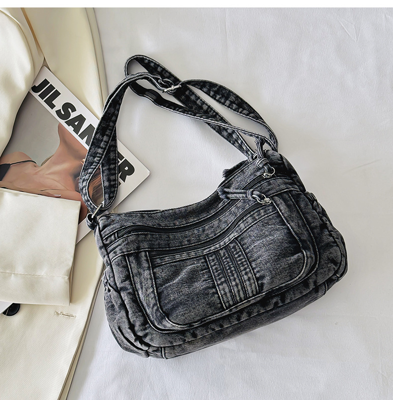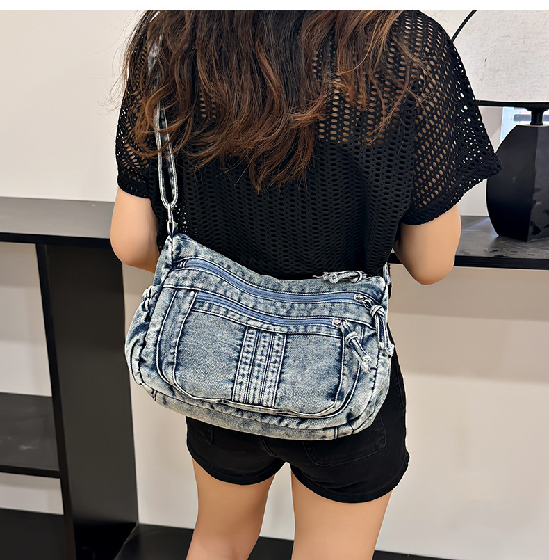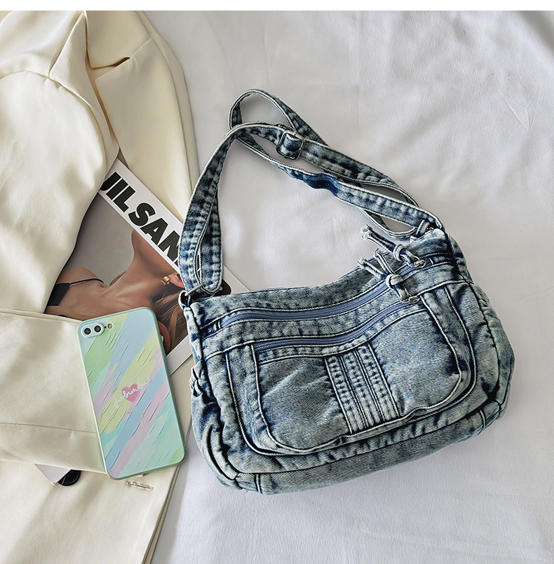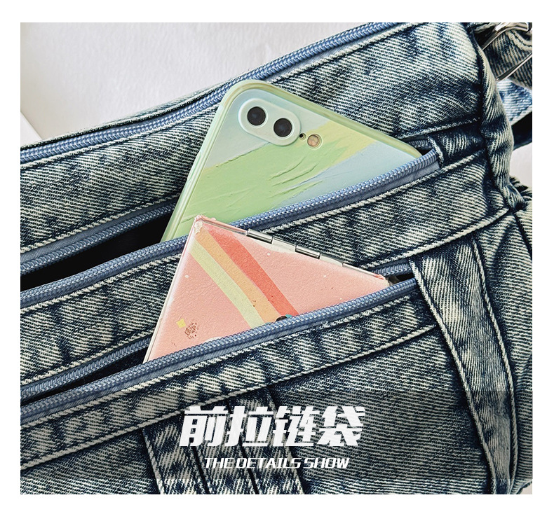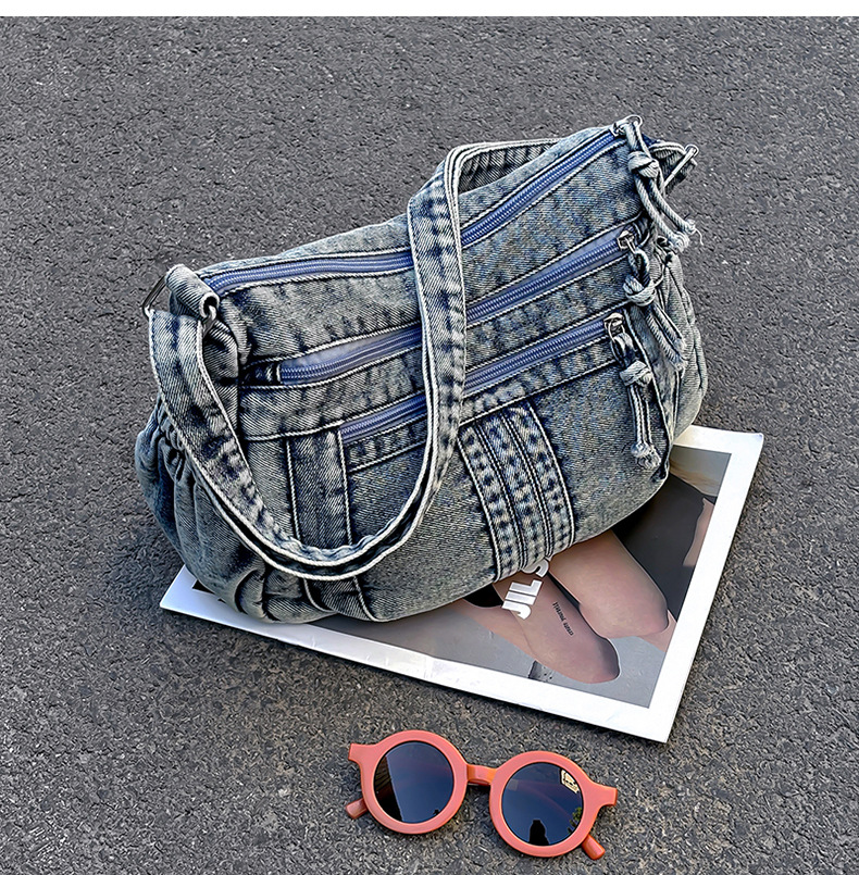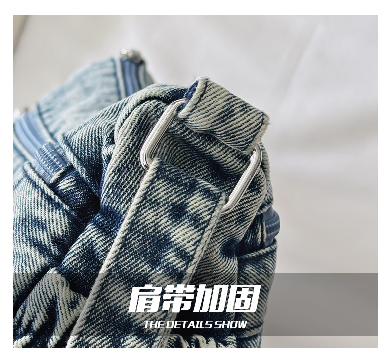 국경 간 대외 무역 여성용 가방 2025 새로운 도시 단순 캐주얼 데님 토트 백 대학 스타일 크로스 바디 백