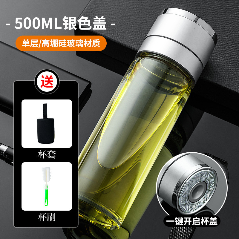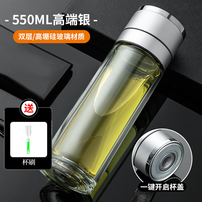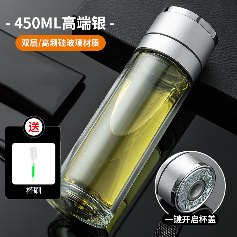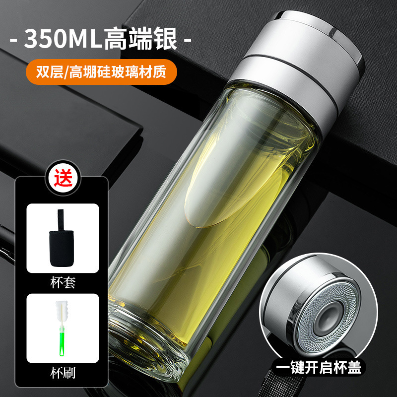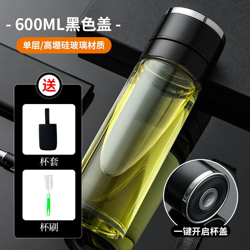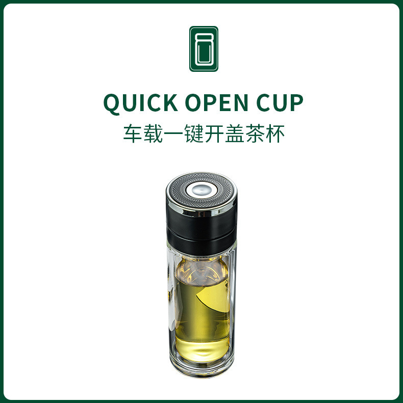 한 손으로 한 번의 클릭으로 뚜껑을 열 수 있는 유리 컵, 남성과 여성을 위한 이중층 빠른 개방 차와 물 분리 차 컵, 차량용 물 Huirui