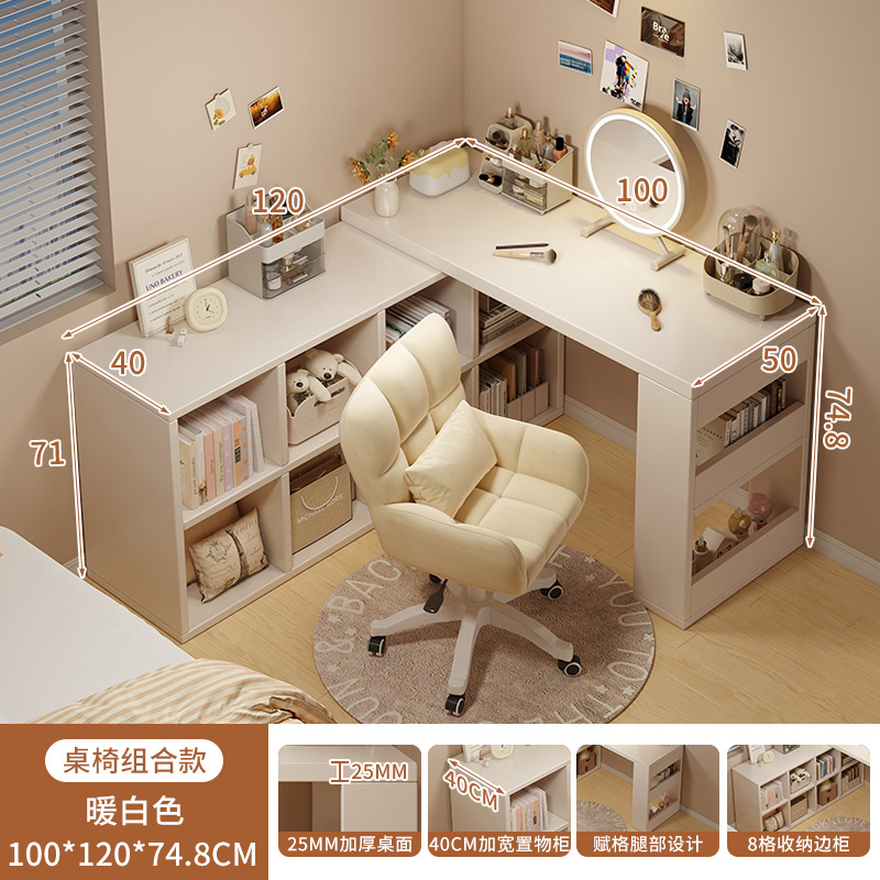 • [결합 패키지] 8칸 사이드 캐비닛, 따뜻한 흰색 120+ 화장 거울 + 컴퓨터 의자