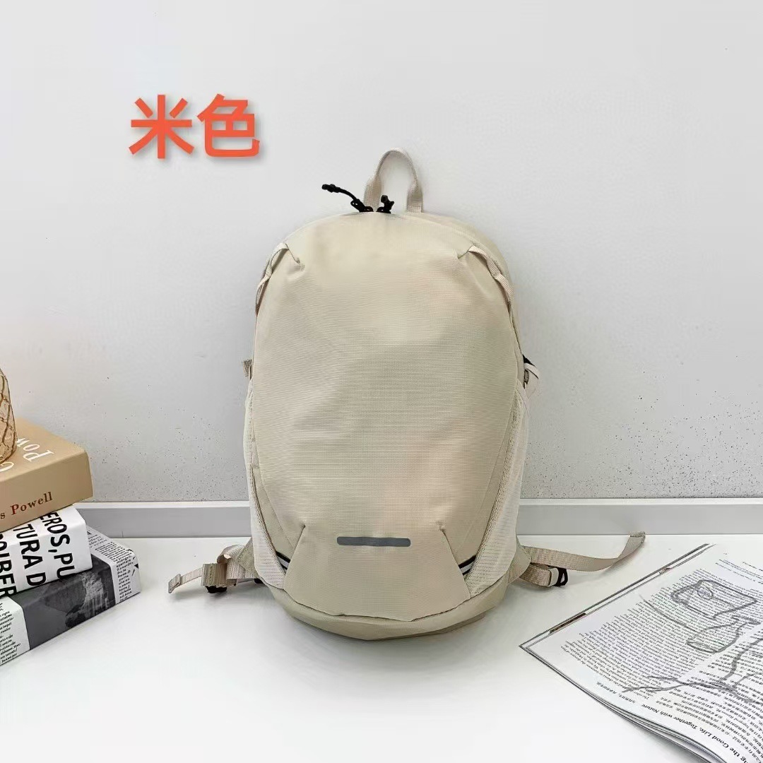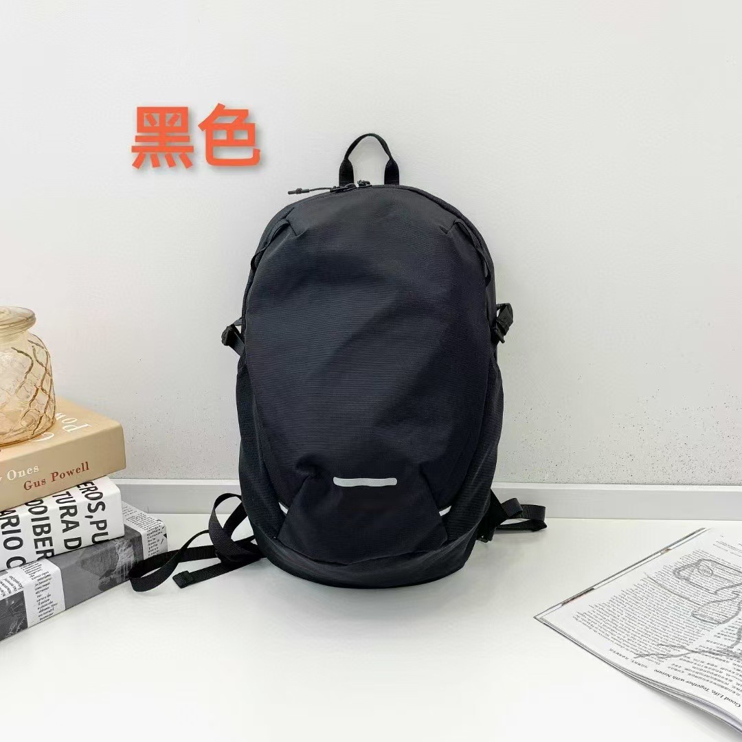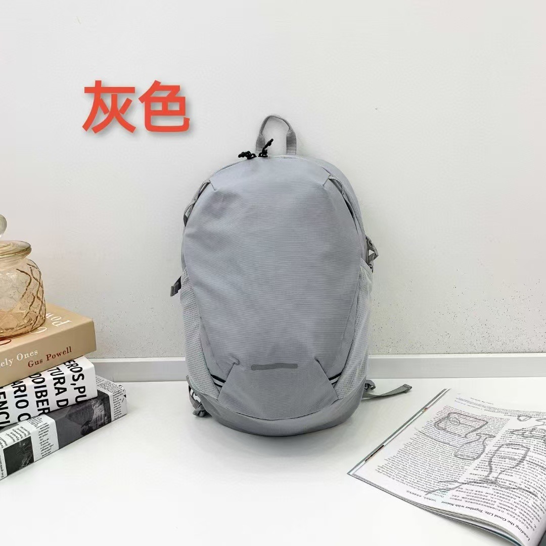 这是一款使用简单设计的尼龙材料制作的,适用于轻量登山的12升登山背包。使用轻质网状材料的肩带具有良好的通风性,并采用弧形设计紧贴肩线,穿着舒适。在包前板的上下方位置有织带,可以使用卡拉比纳等把手套、小杯等简单物品挂在上面使用。肩带上的胸部带可以贴合身体,以平衡背包的重心,起到固定背包的作用。可以拆卸的胸部带可以根据用户的尺寸穿在织带上使用。包前板、织带和拉链的绳子上应用了反光功能,使夜间行走更安全。腰带可以根据需要拆卸或装配在两侧织带中间的开口处。包侧面的网袋可以存放小物件或水壶,使用方便。