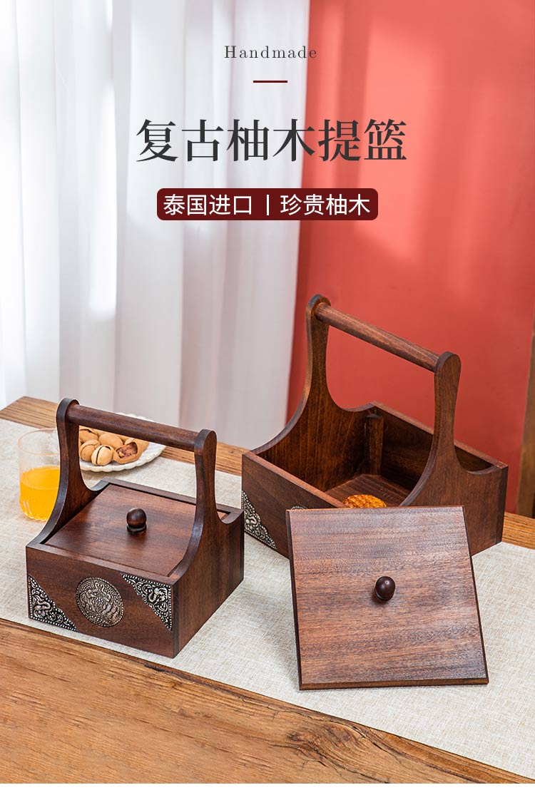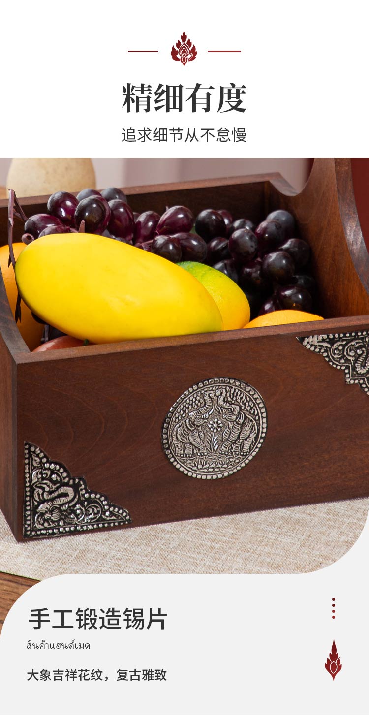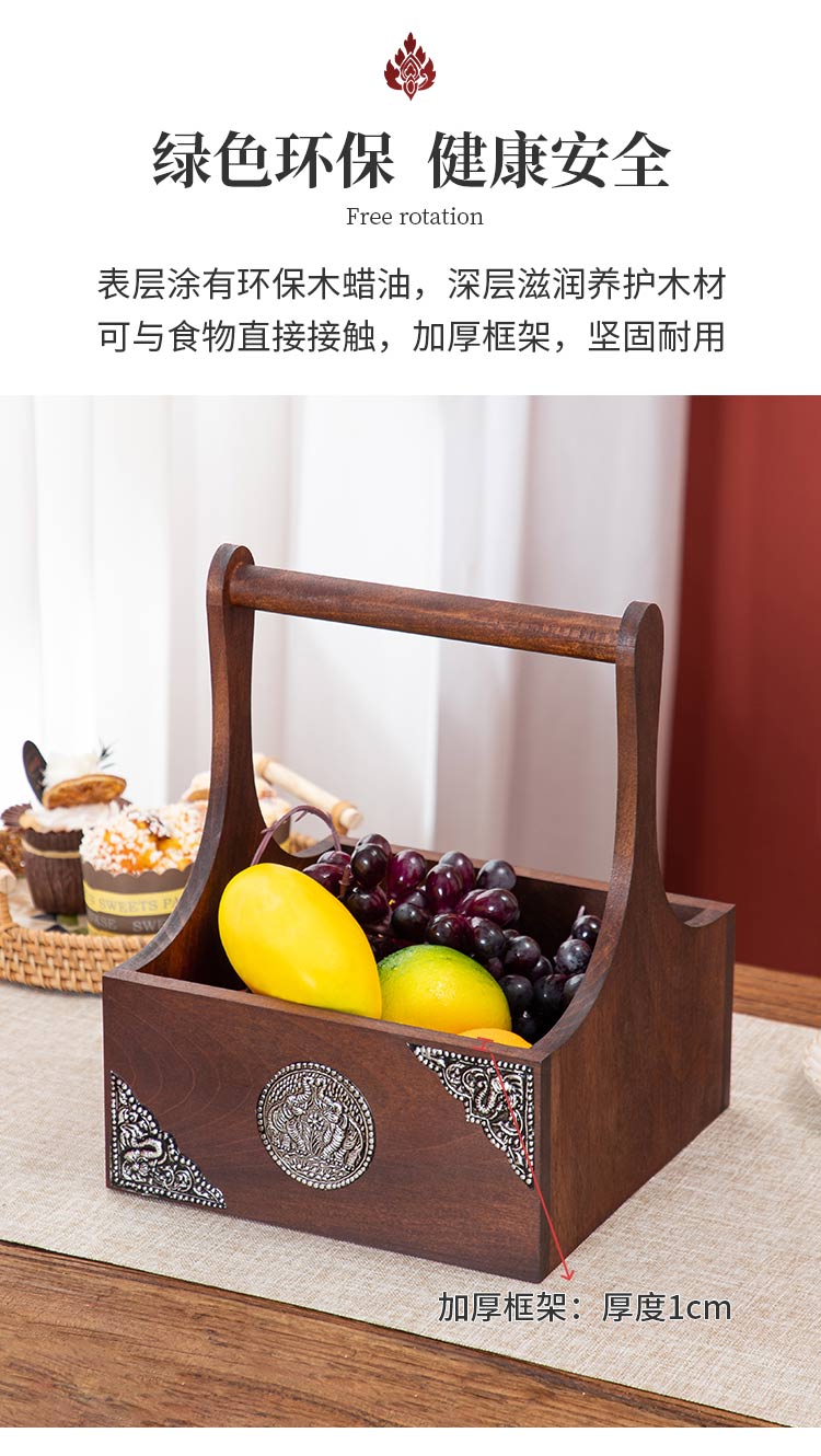 복고풍 단단한 나무 손 바구니 과일 접시 태국 바구니 과일 바구니 야채 바구니 나무 스낵 상자 식품 상자 보관 상자 나무