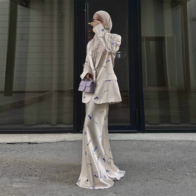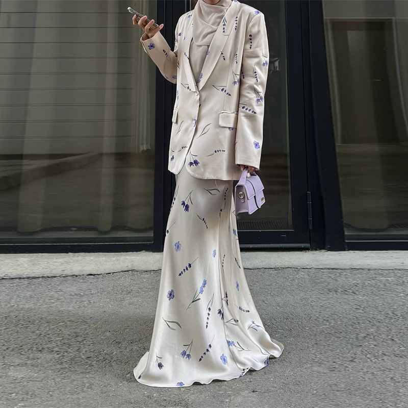 2025 여름 유럽과 미국의 아마존 국경 간 대외 무역 새로운 여성 의류 우아한 꽃 무늬 편안한 롱 스커트 투피스 세트