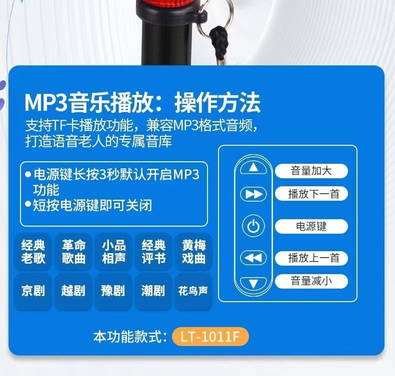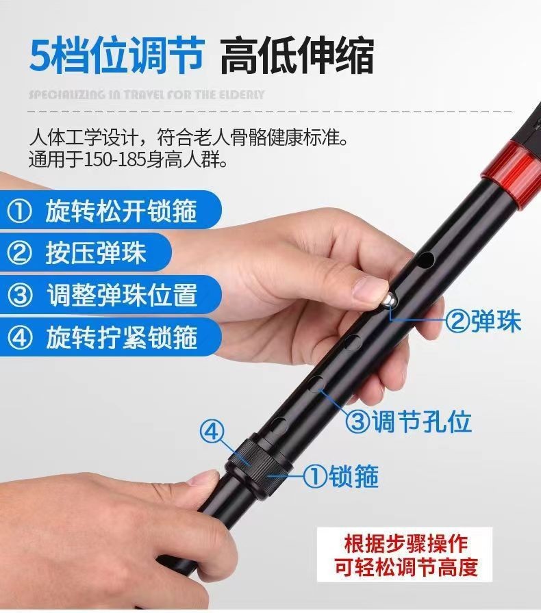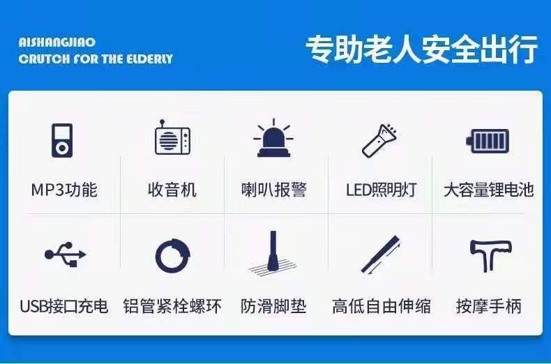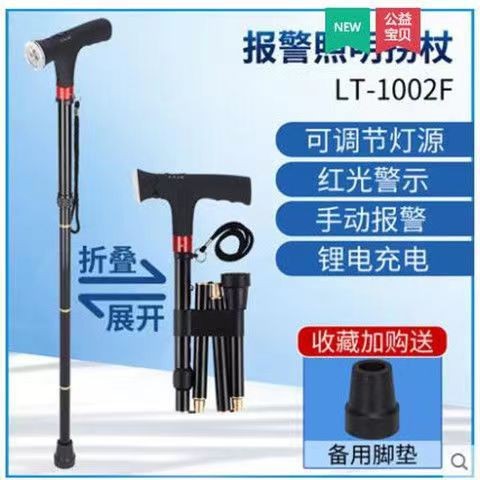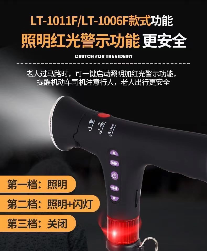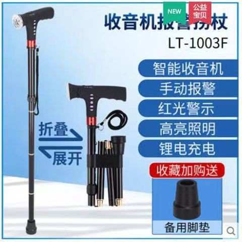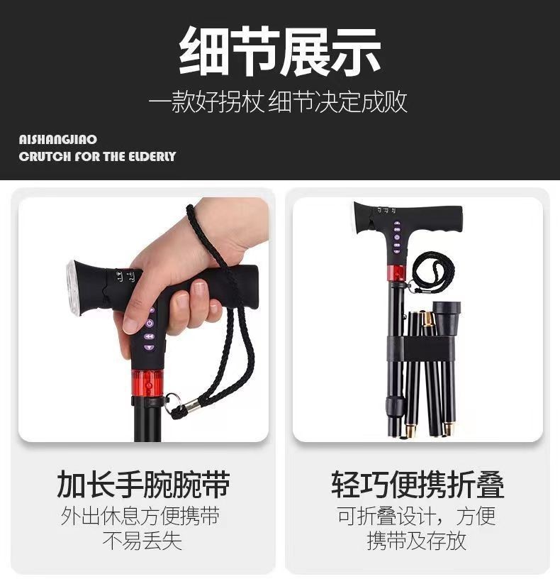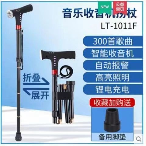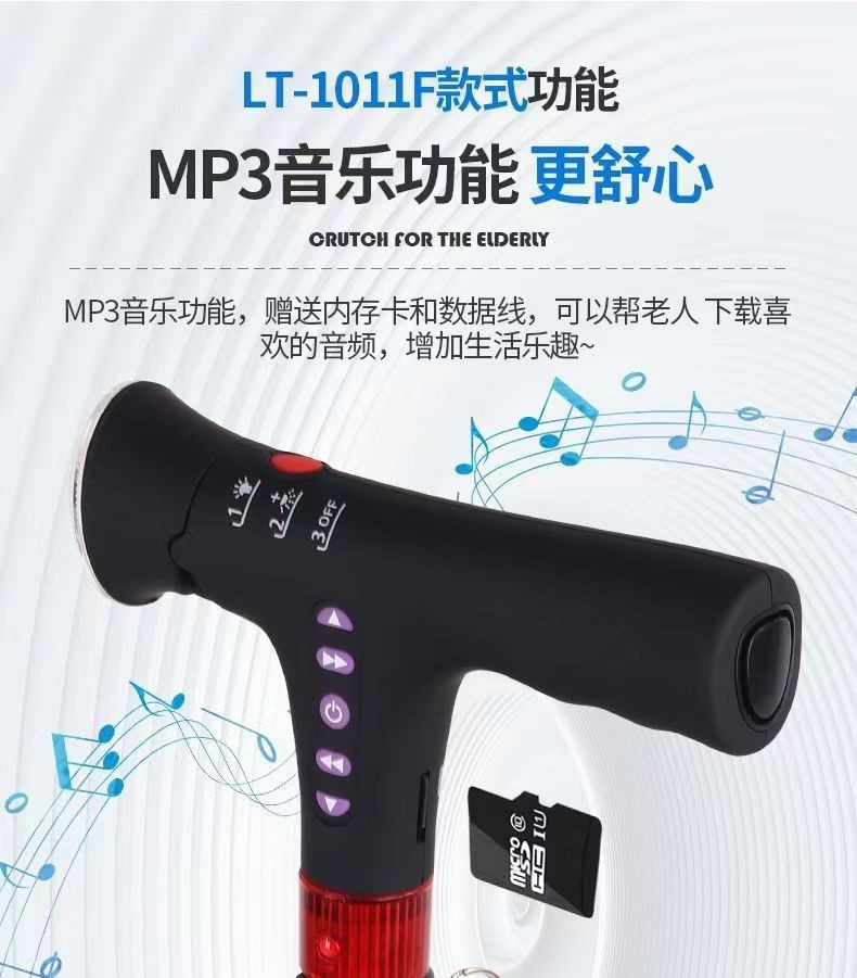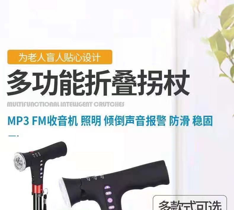 노인을 위한 조명이 있는 맞춤형 미끄럼 방지 지팡이, 음악 충전이 가능한 접이식 지팡이, 다기능 MP3 지팡이