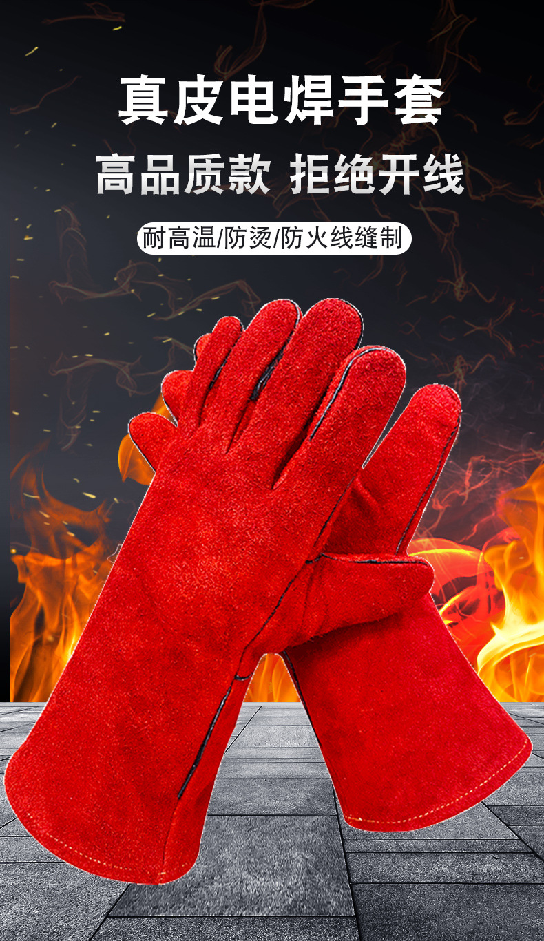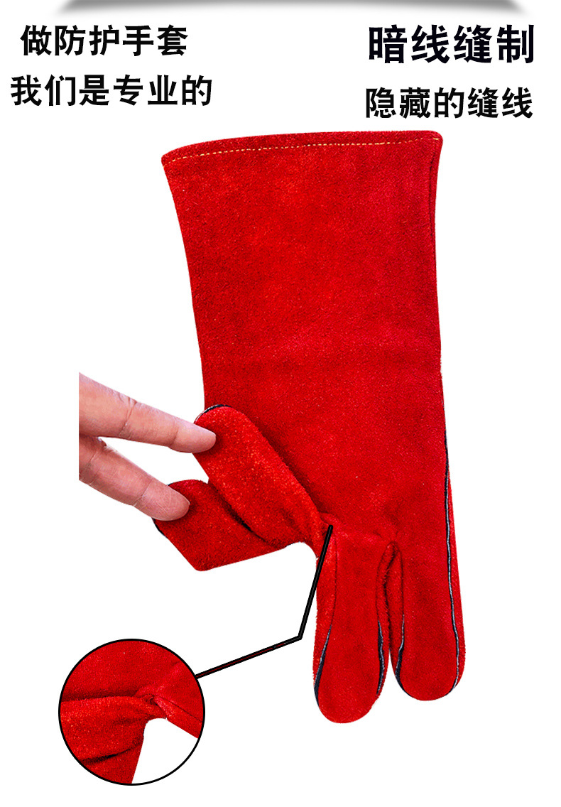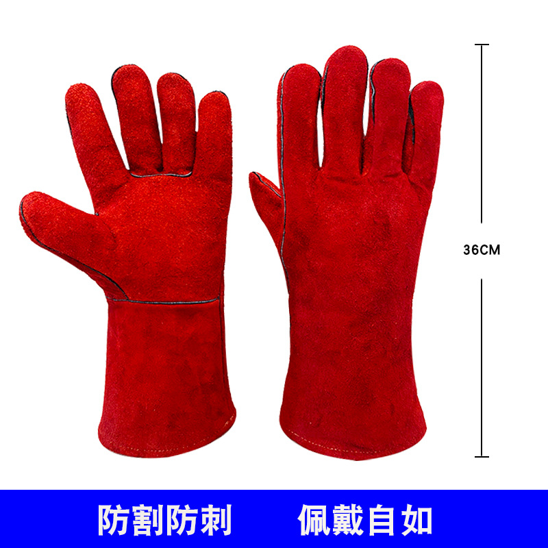 소가죽 용접 장갑, 전체 가죽, 부드러운 가죽, 두꺼운 용접 장갑, 긴 내열성 및 내마모성, 길어진 화상 방지 용접 장갑 도매스토어 가기