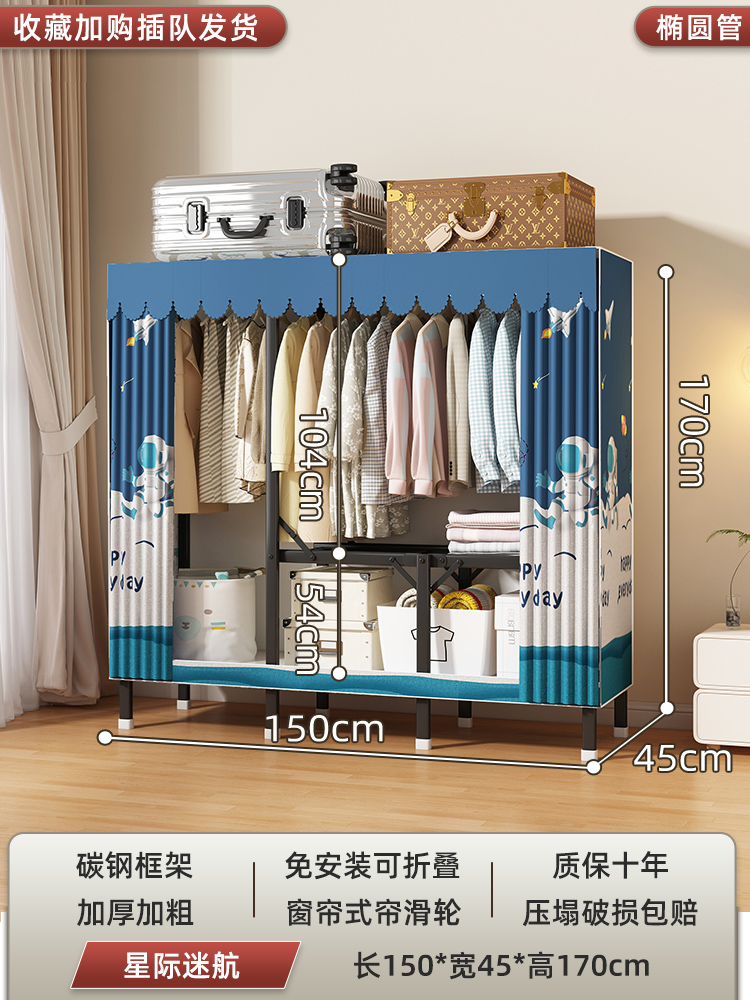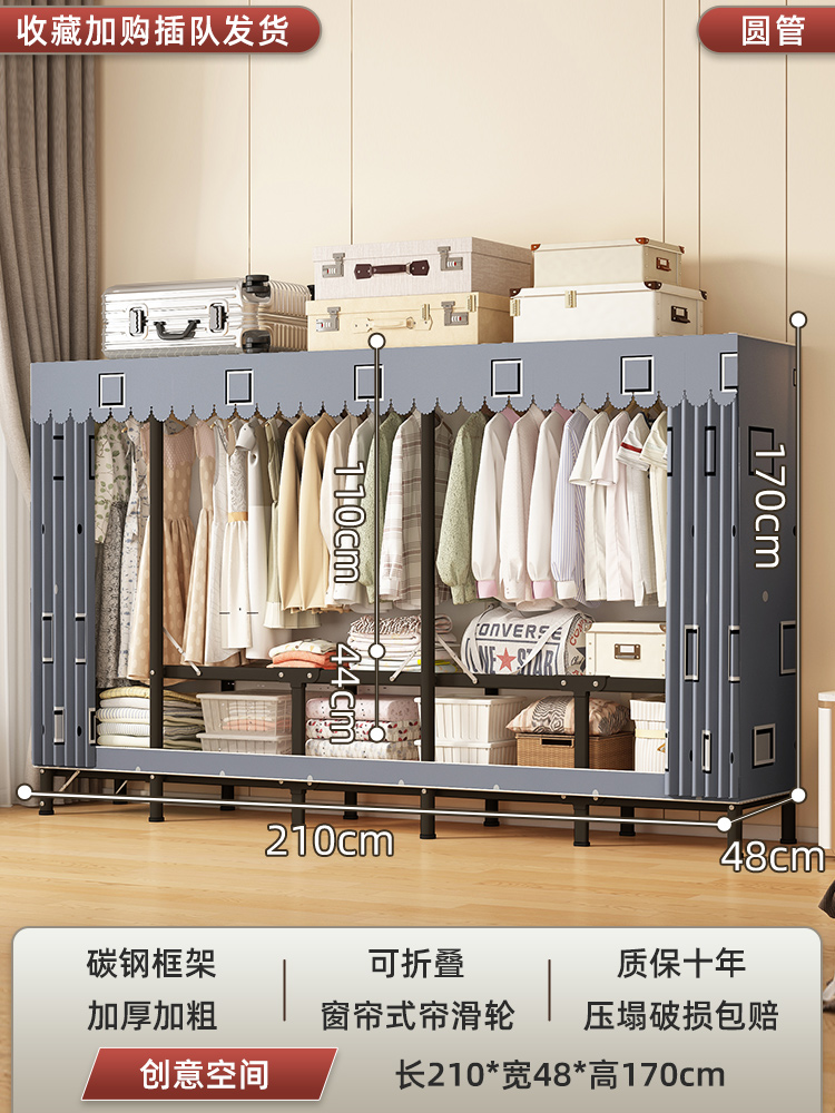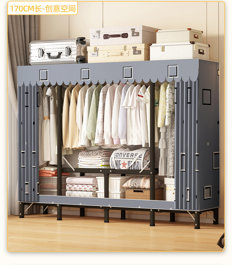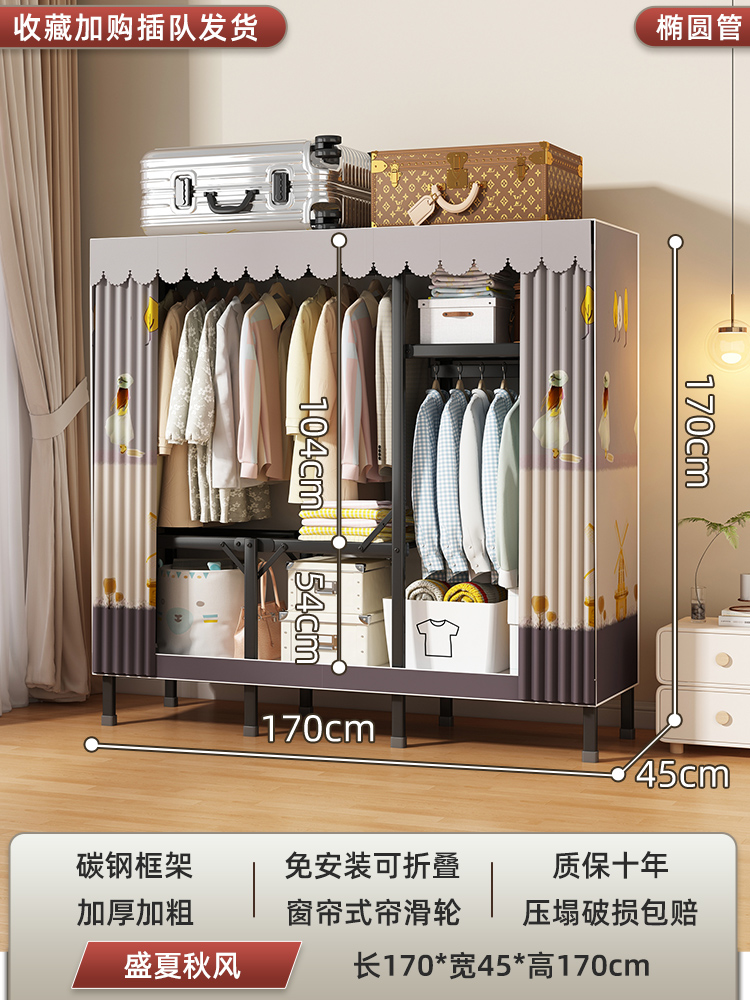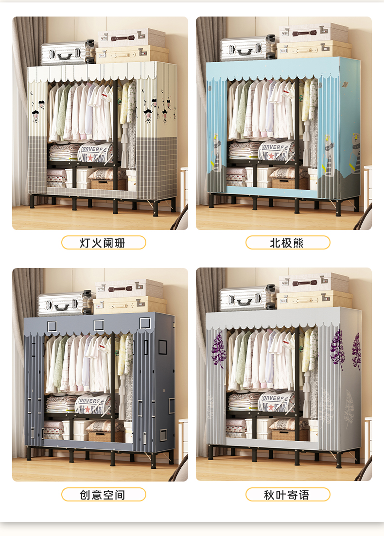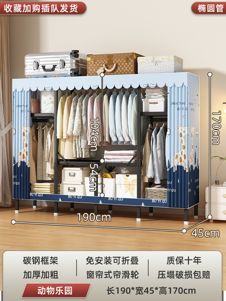 옷장, 가정용 침실, 설치가 필요 없음, 접이식, 간단한 조립, 천 옷장, 전체 강철 프레임, 견고하고 내구성이 뛰어나며 임대 주택용스토어 가기