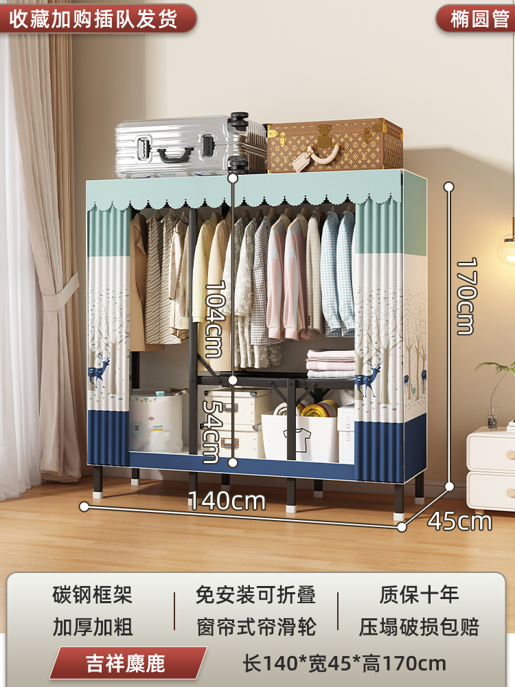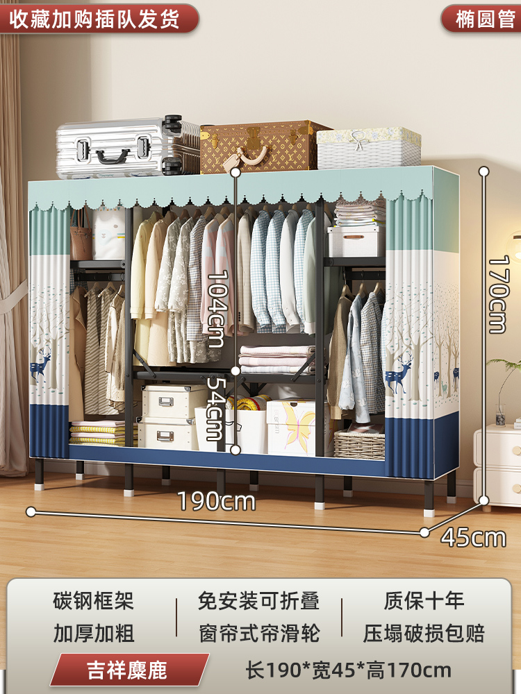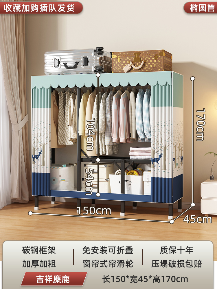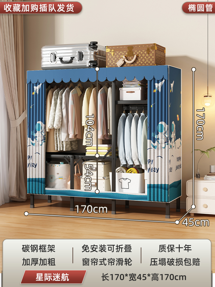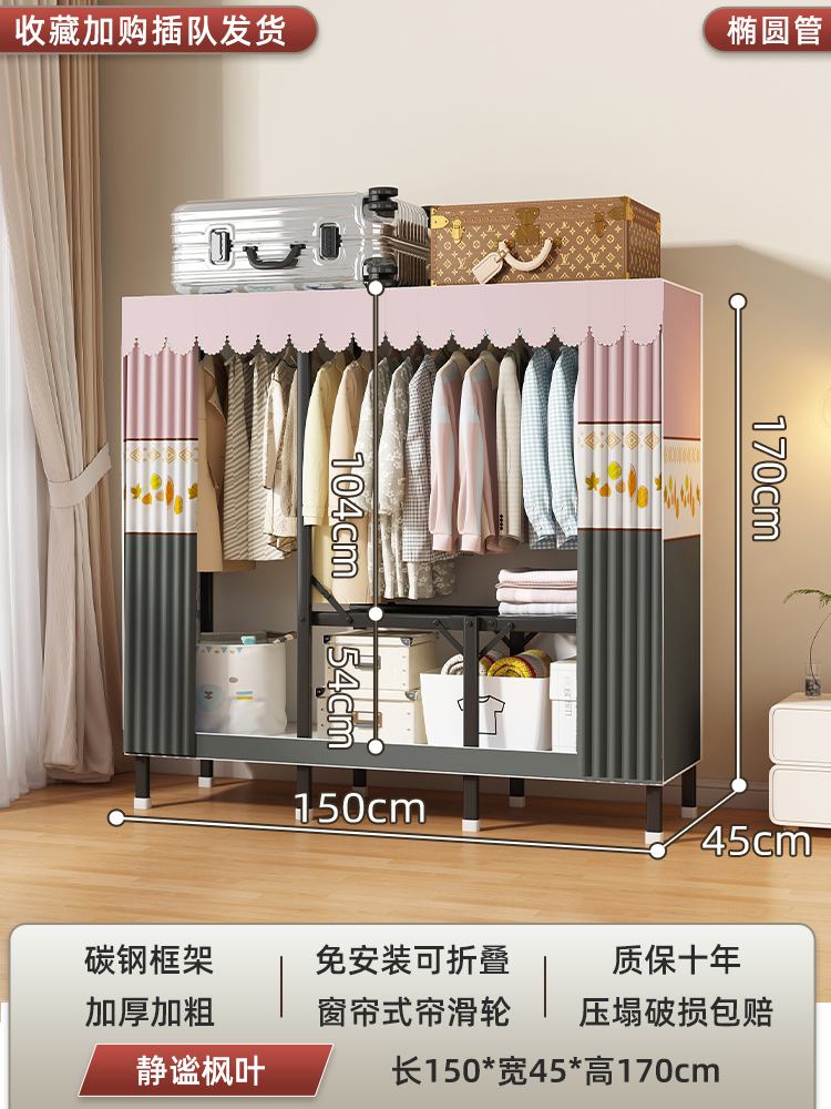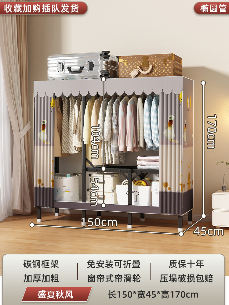 옷장, 가정용 침실, 설치가 필요 없음, 접이식, 간단한 조립, 천 옷장, 전체 강철 프레임, 견고하고 내구성이 뛰어나며 임대 주택용스토어 가기
