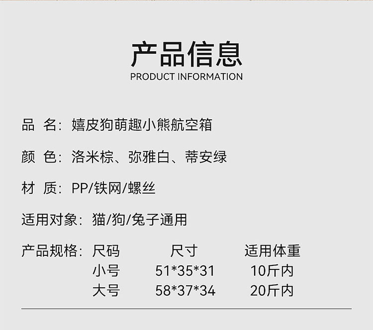 【箱规尺寸】:小号 52*33.5*66.5 cm ,  大号 57*38.5*66.5 cm