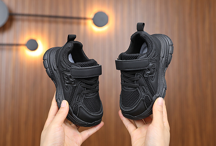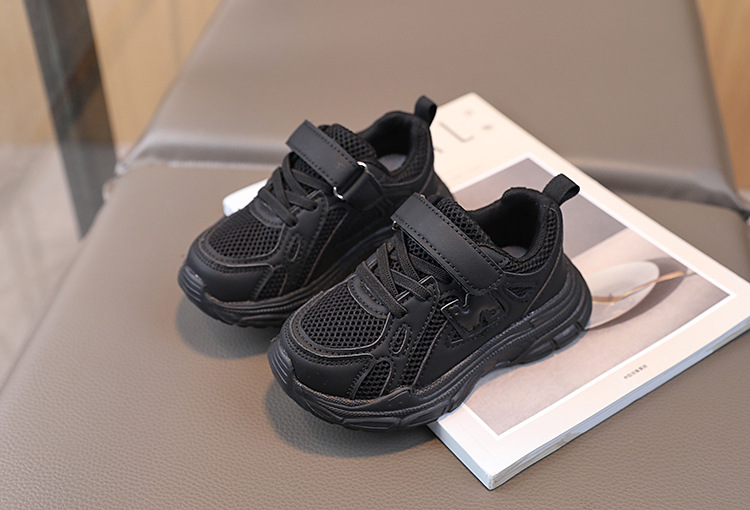 남아용 신발, 아동용 검정색 운동화, 중대형 아동용 통기성 메쉬 EVA 초경량 운동화, 여아용 아빠 신발