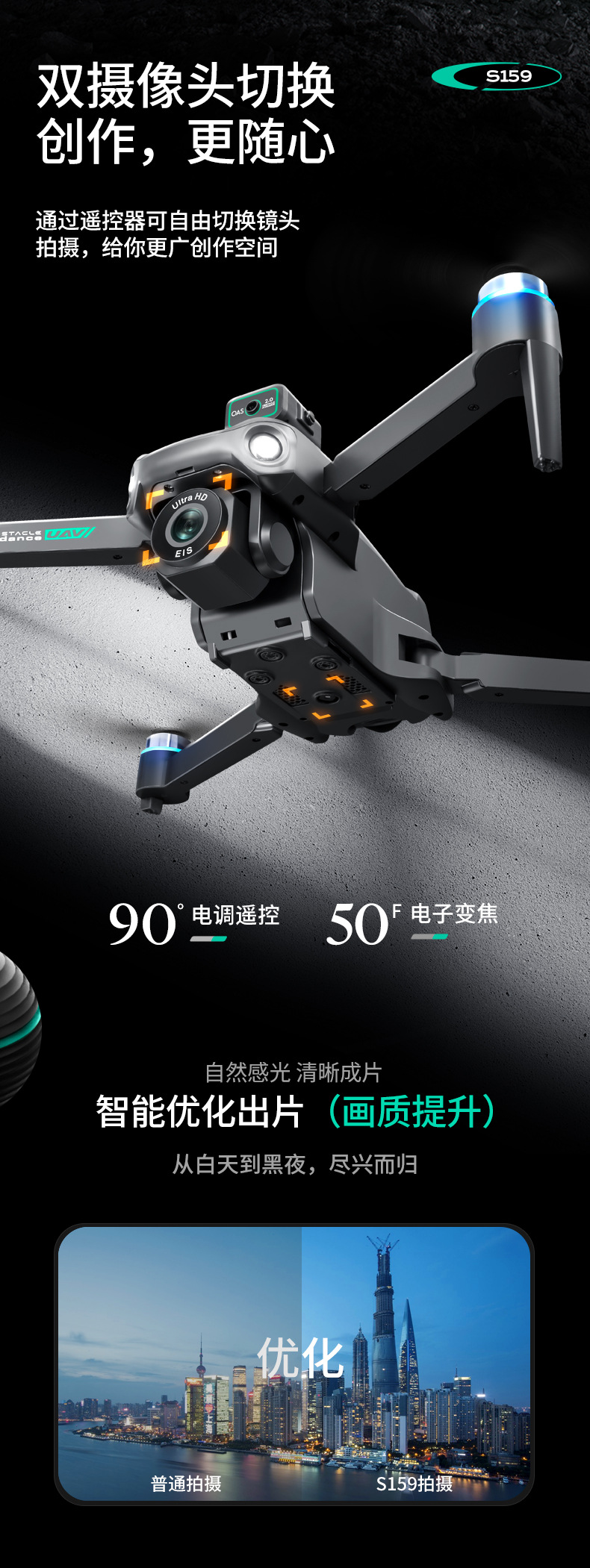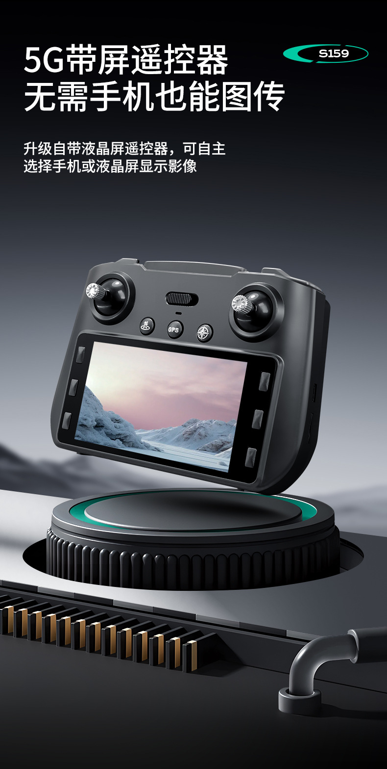 디스플레이가있는 s159 드론 원격 제어 항공 사진 항공기 4 축 GPS 자동 반환 원격 제어 항공기 장난감스토어 가기