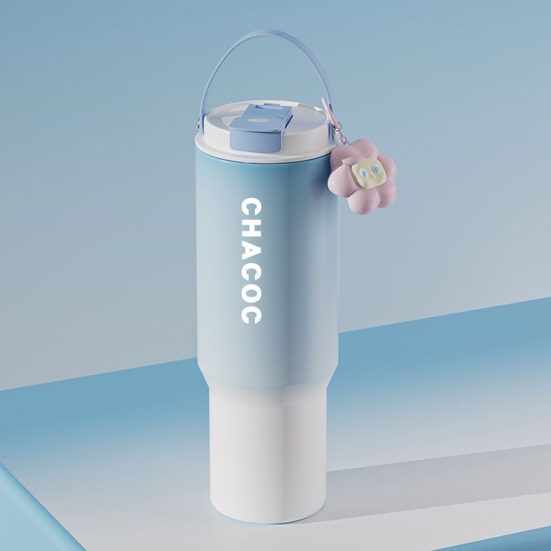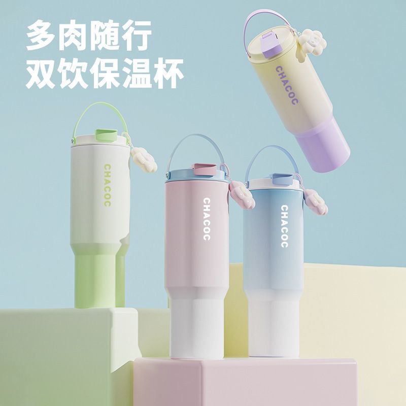 도파민 그라데이션 진공 절연 컵 간단한 여성용 대용량 커피 컵 휴대용 더블 드링크 휴대용 밀짚 컵