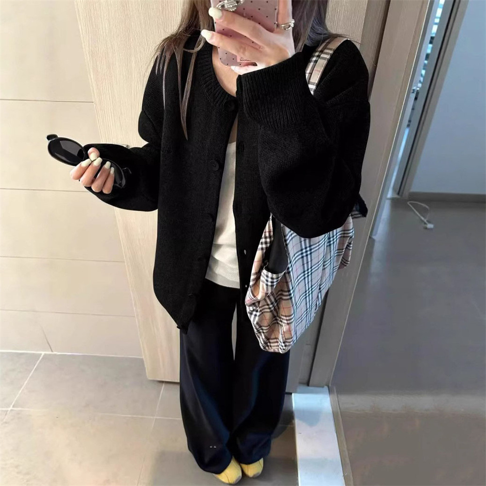여성을위한 솔리드 컬러 니트 카디건 가을 새로운 느슨한 게으른 스타일 캐주얼 하이 엔드 외부 스웨터 코트 탑 여성을위한