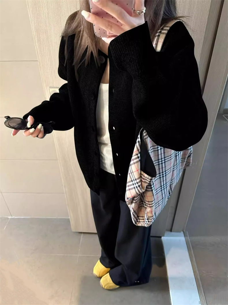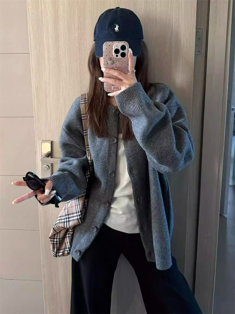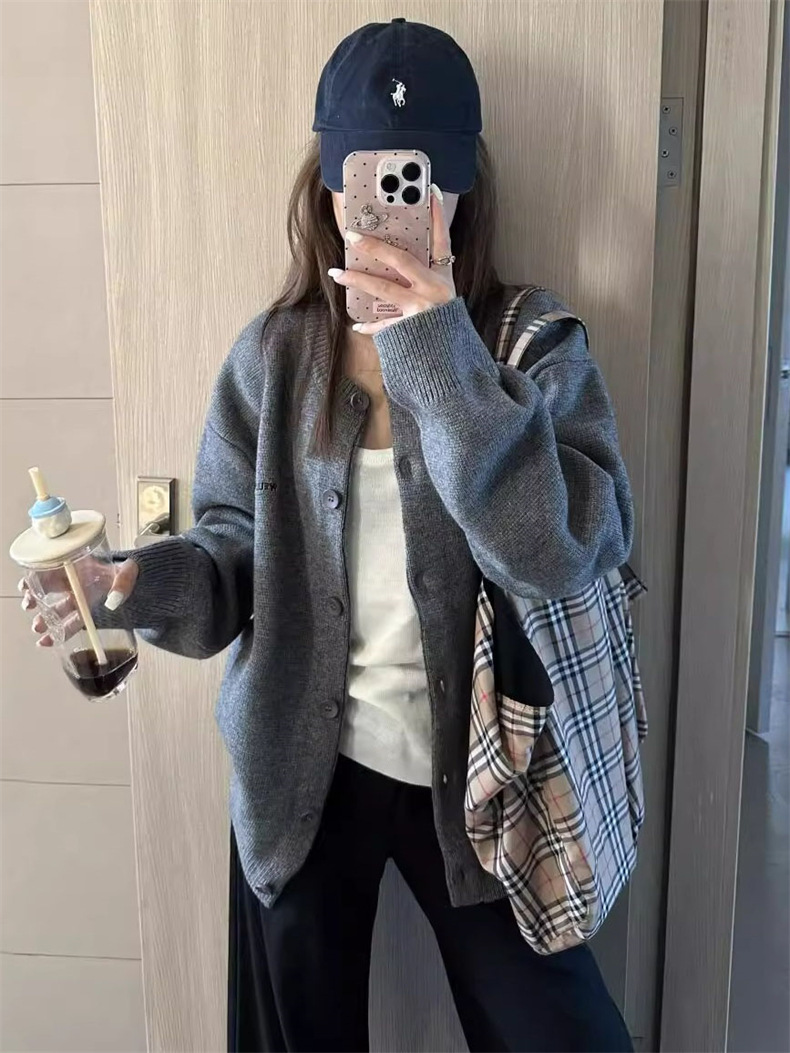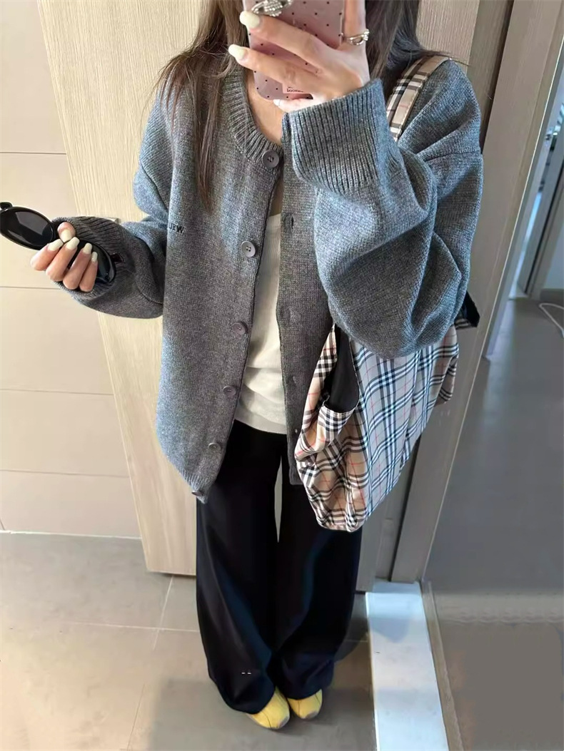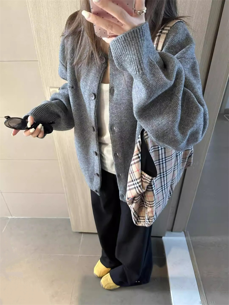 여성을위한 솔리드 컬러 니트 카디건 가을 새로운 느슨한 게으른 스타일 캐주얼 하이 엔드 외부 스웨터 코트 탑 여성을위한스토어 가기
