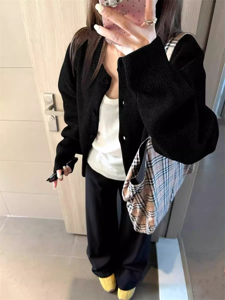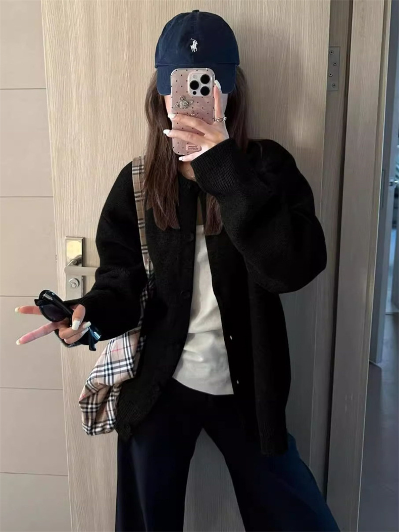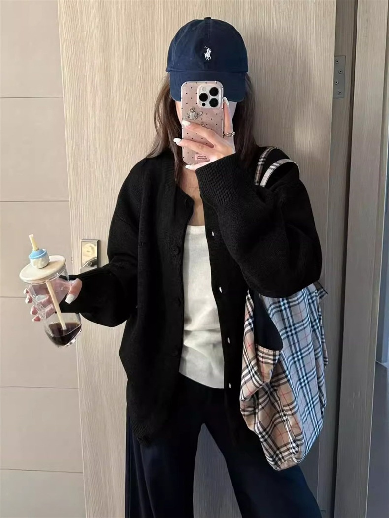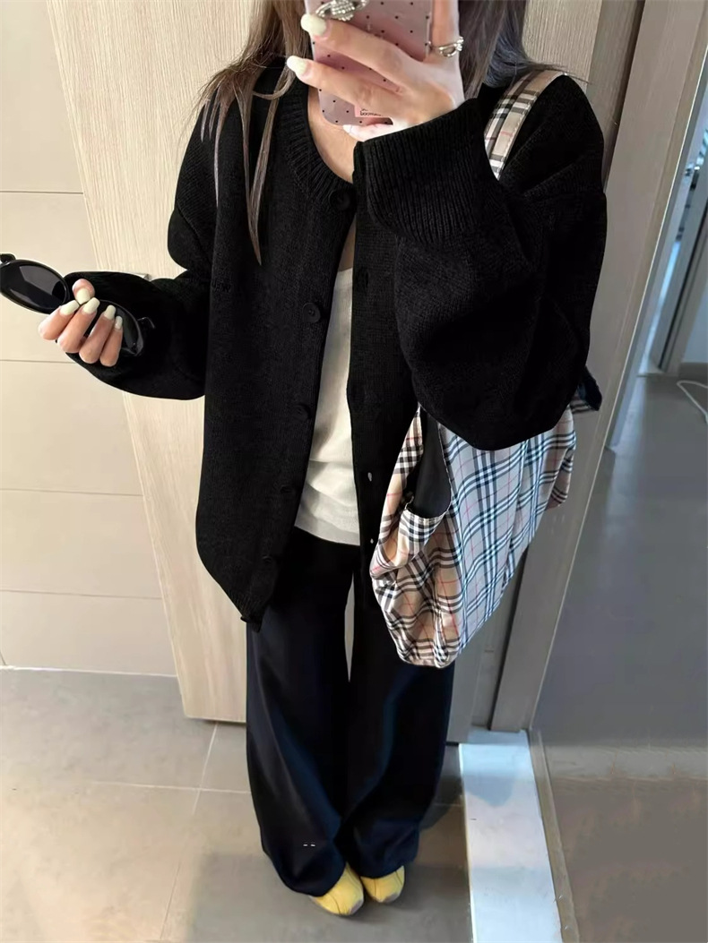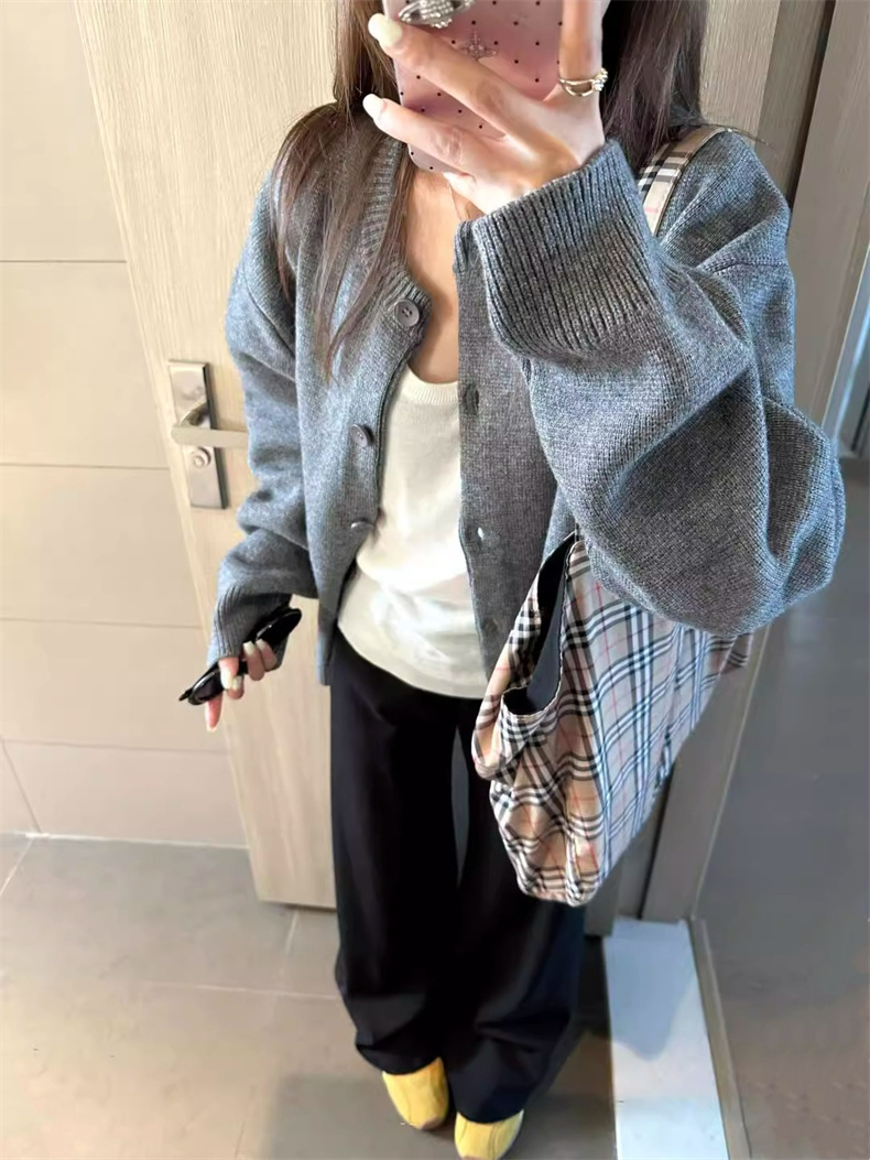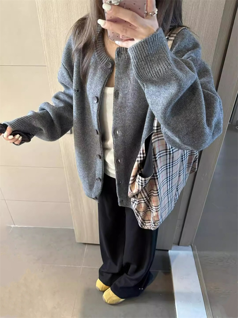 여성을위한 솔리드 컬러 니트 카디건 가을 새로운 느슨한 게으른 스타일 캐주얼 하이 엔드 외부 스웨터 코트 탑 여성을위한스토어 가기