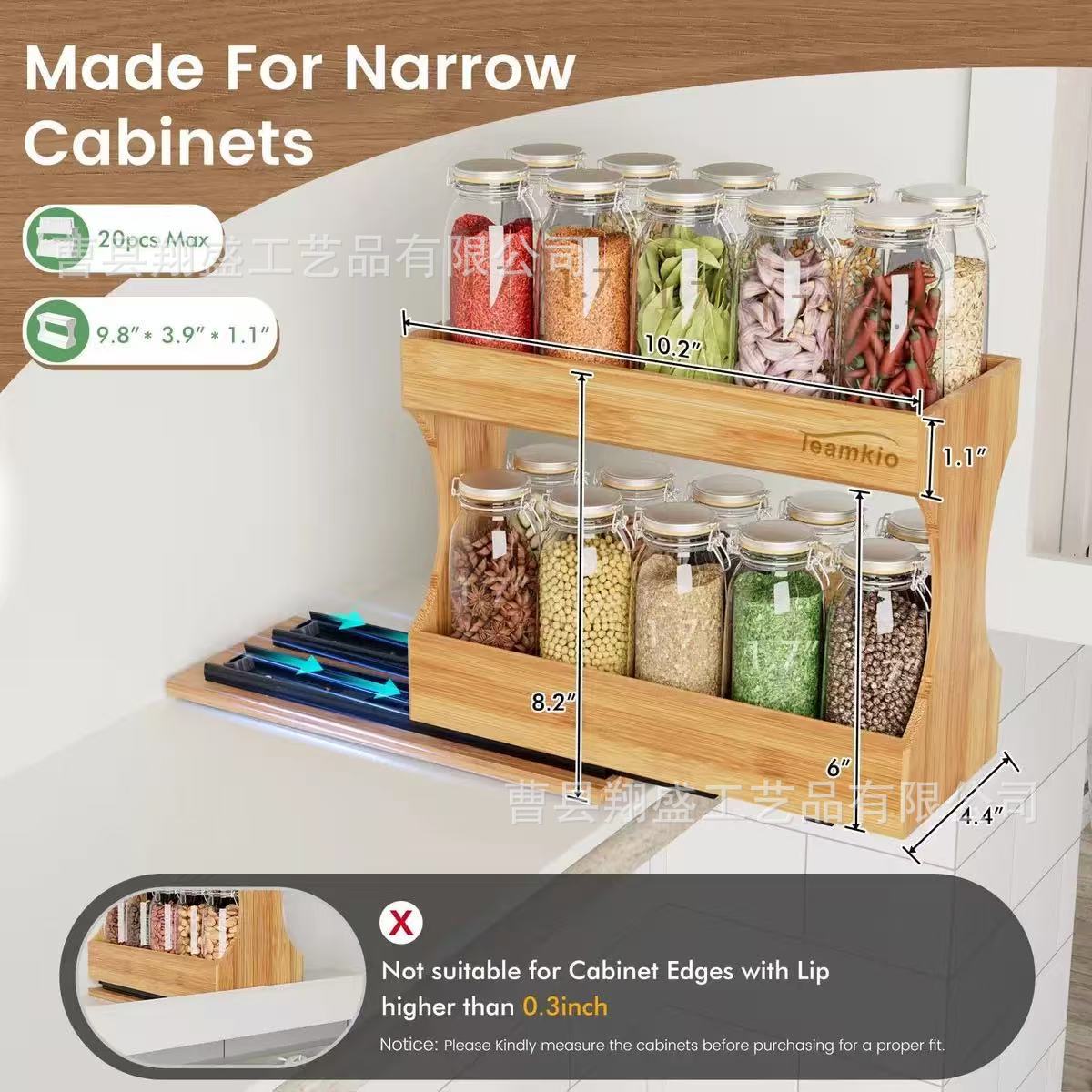 국경 간 대나무 데스크탑 잡화 보관 랙 단단한 나무 더블 레이어 커피 보관 랙 홈 주방 조미료 보관 랙