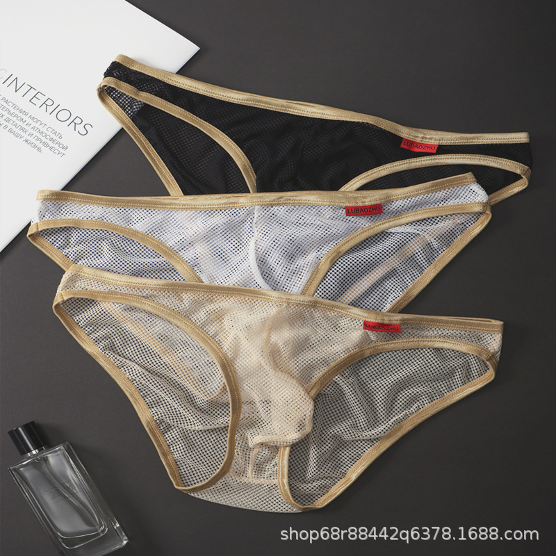 남성용 삼각형 메쉬 속옷 여름 통기성 완전 투명 솔리드 컬러 통기성 메쉬 남성용 팬티스토어 가기