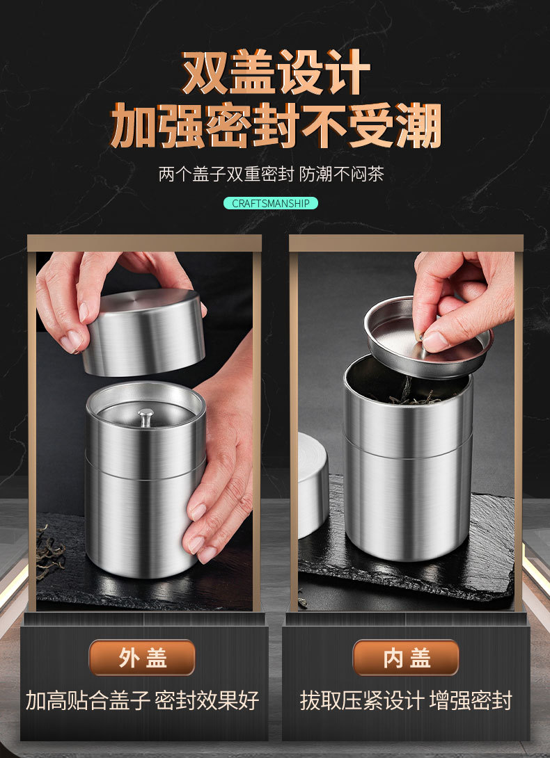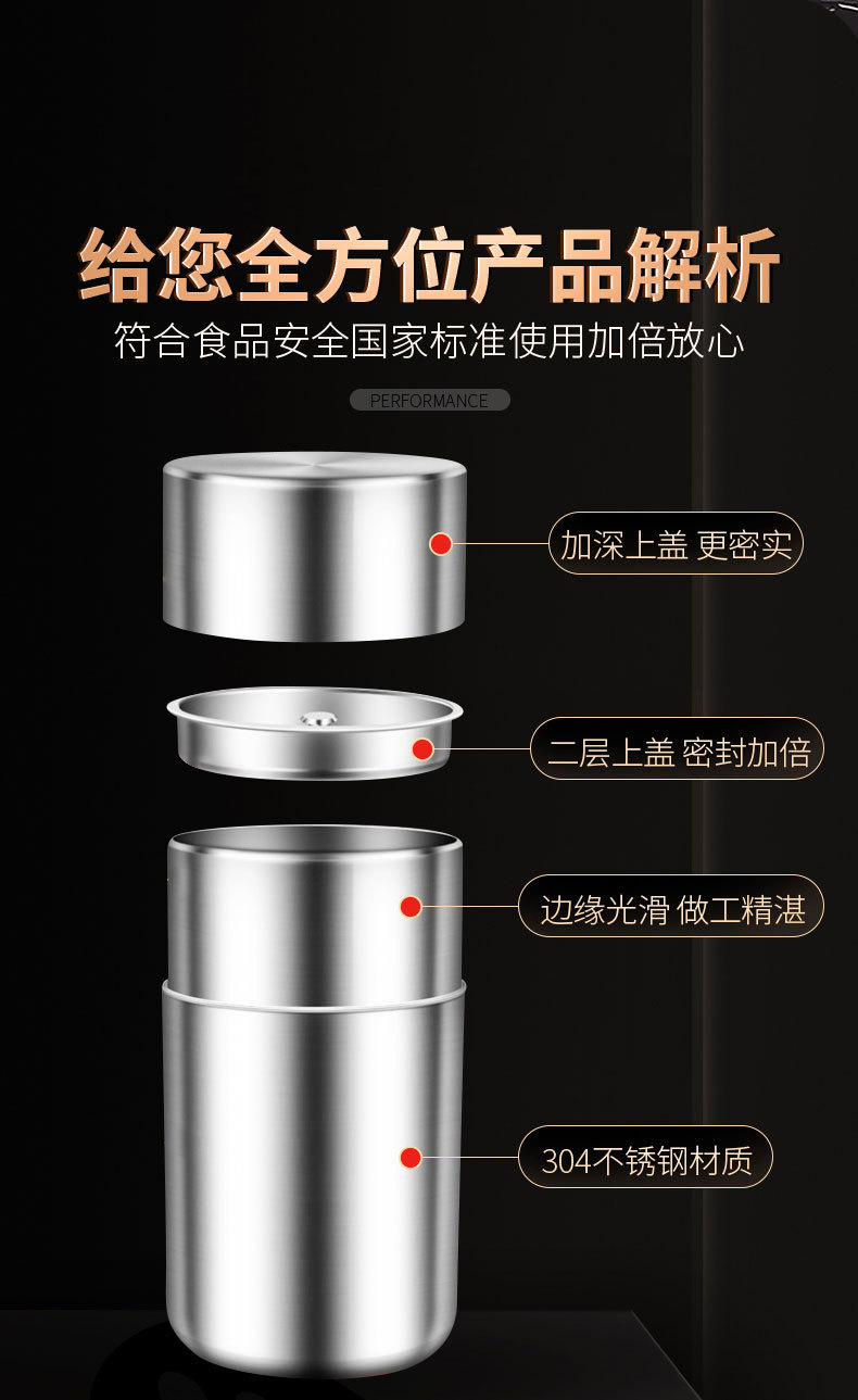 304 스테인레스 스틸 차 캔 더블 레이어 방습 꽃 차 밀봉 캔 말린 과일 저장 캔 휴대용 커피 콩 저장 캔