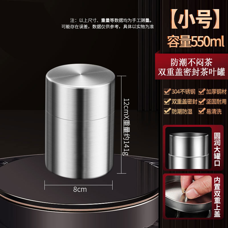 304 스테인레스 스틸 차 캔 더블 레이어 방습 꽃 차 밀봉 캔 말린 과일 저장 캔 휴대용 커피 콩 저장 캔스토어 가기