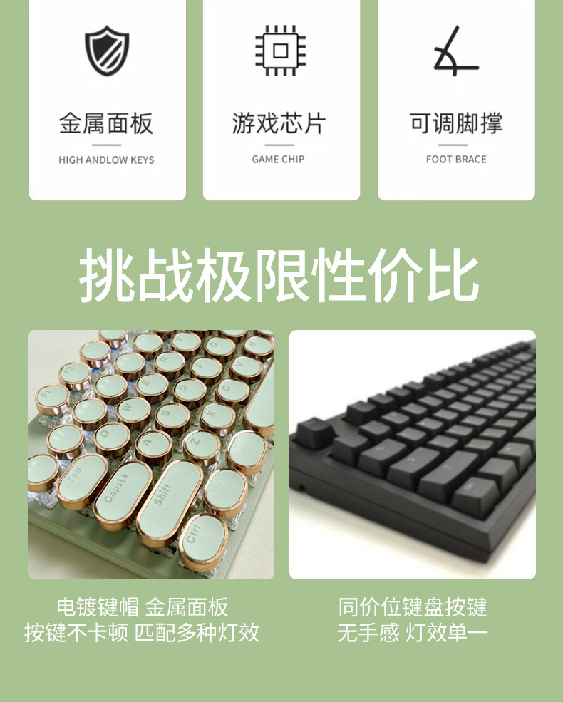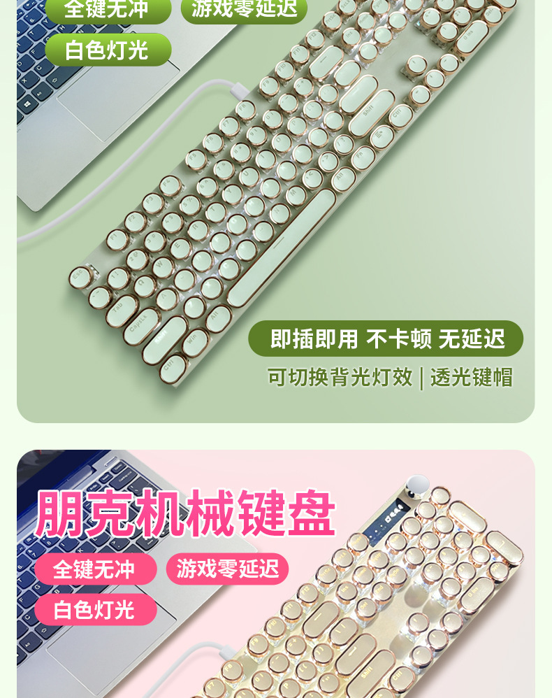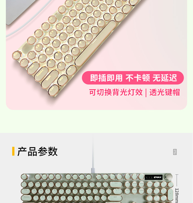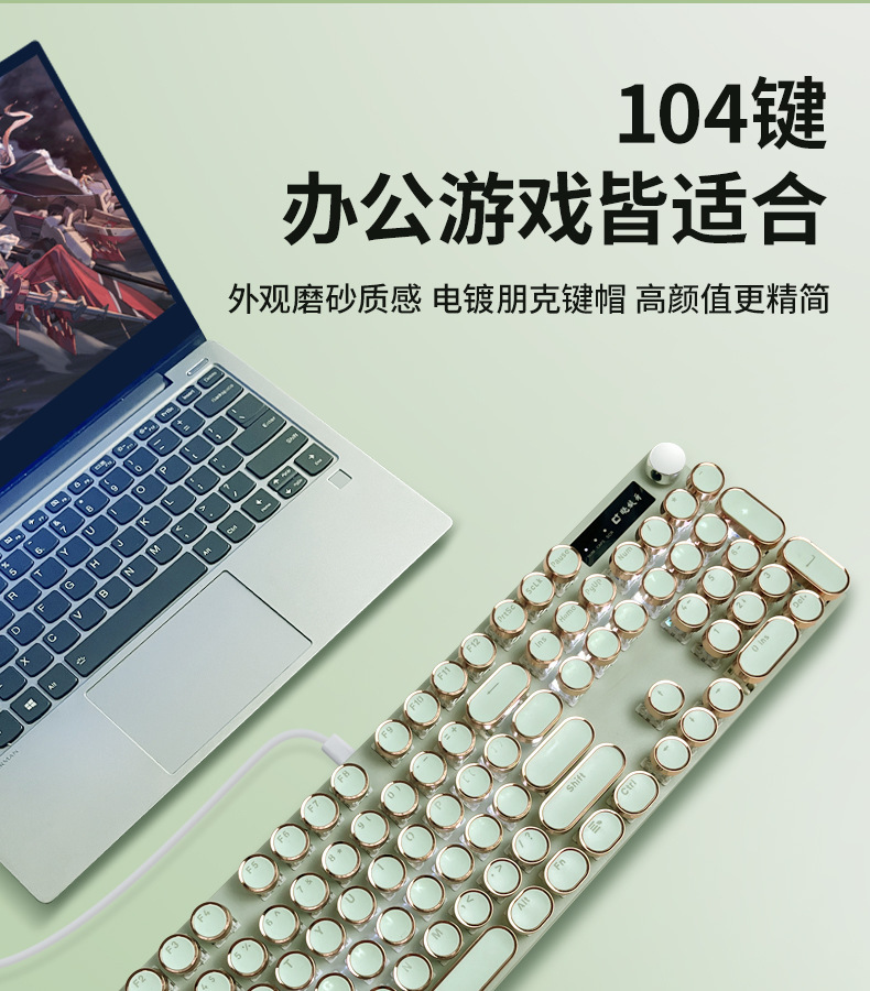 국경 간 J104 펑크 기계식 키보드 RGB 다채로운 복고풍 전자 스포츠 게임 키보드 소녀 사무실 컴퓨터 액세서리스토어 가기