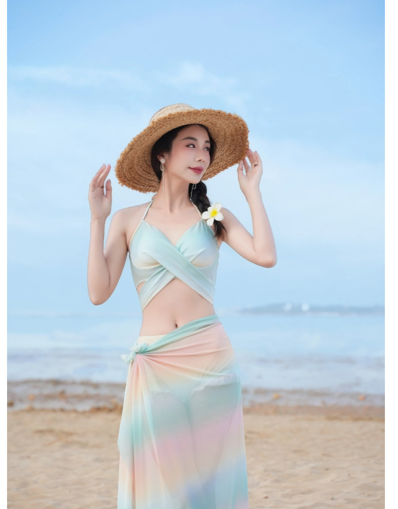 비키니 비키니 스플릿 수영복 여성 3 피스 아일랜드 비치 온천 휴가 컬러풀 스위트 소녀 수영복