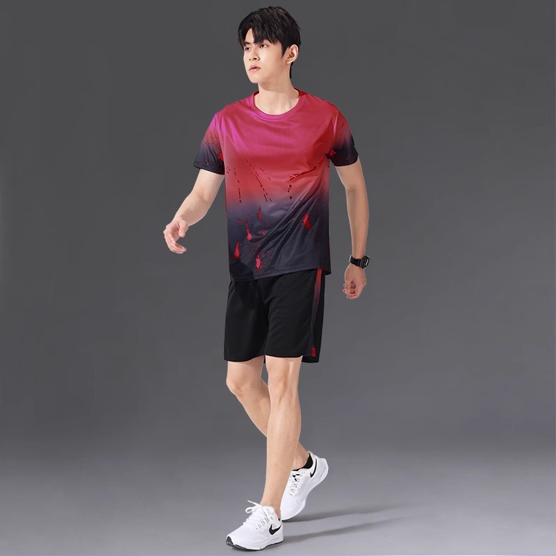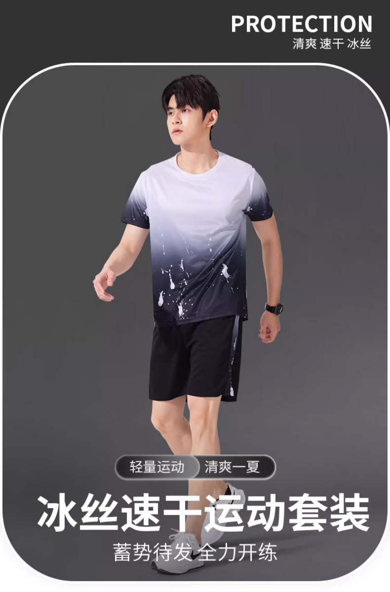스포츠 슈트 남성용 속건성 얼음 실크 티셔츠 반팔 여름 러닝 저지 피트니스 의류 농구 배드민턴 슈트스토어 가기