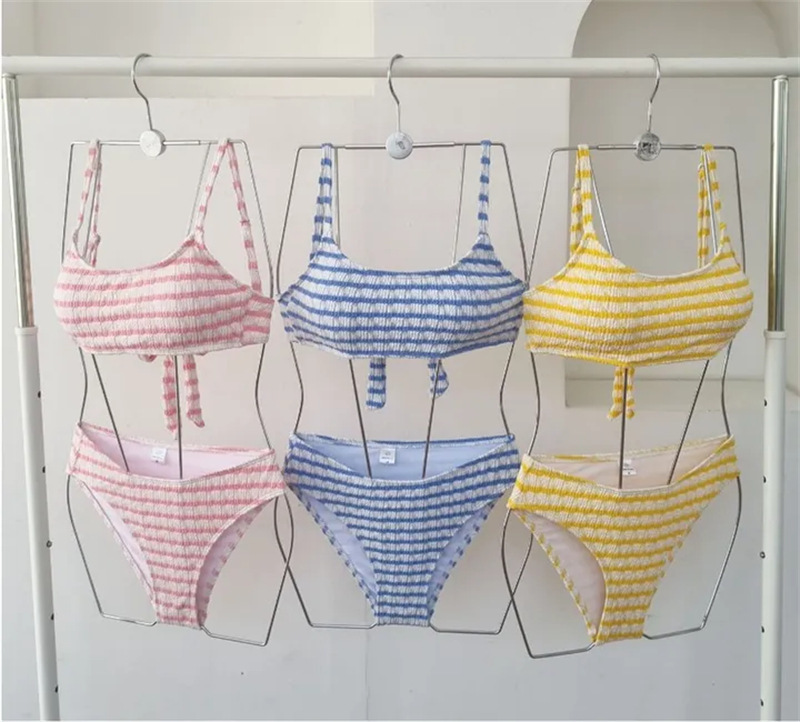 한국 귀엽고 달콤한 줄무늬 스플릿 수영복 여성 2025 여름 새로운 작은 가슴 푸시 업 스포츠 비키니스토어 가기