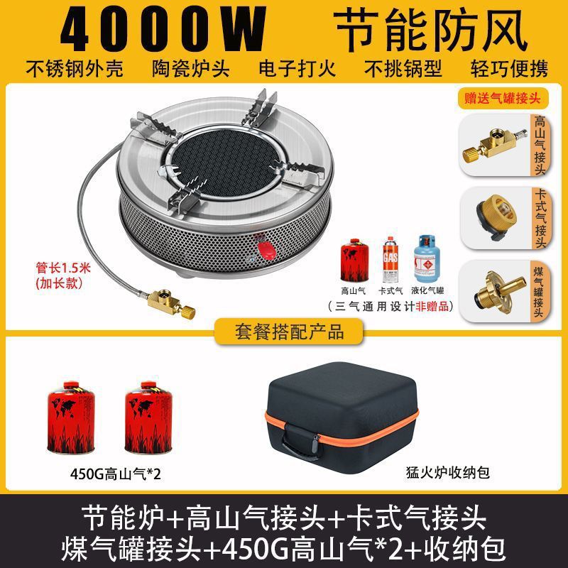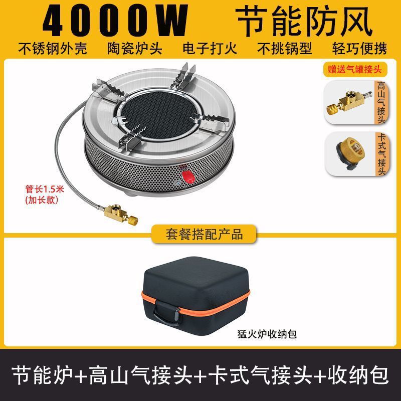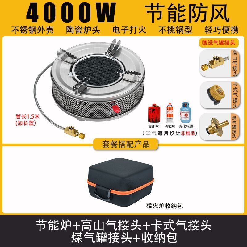 • Six Star Meng 스토브 - 에너지 수집 방풍 커버 + 플랫 가스 카드 가스 커넥터 + 보관 가방