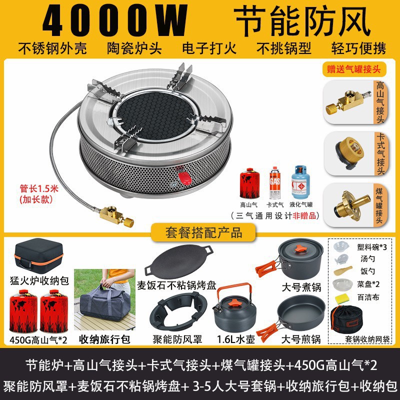 • 적외선 에너지 절약 스토브-450g*2 가스+피크닉 냄비+커넥터 보관 가방