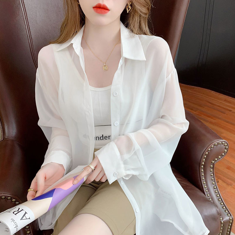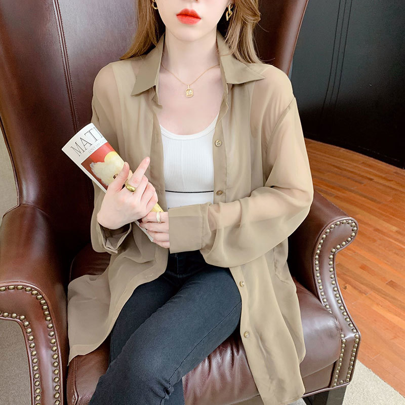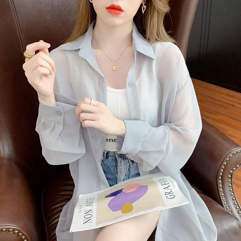 2025년 여름 여성을 위한 쉬폰 얇은 의류 새로운 루즈하고 다재다능한 캐주얼 카디건 탑 재킷스토어 가기