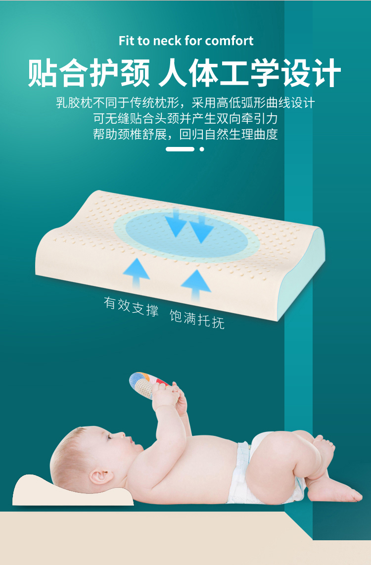 어린이용 라텍스 베개, 초등학생용 태국 천연고무 베개 코어, 6~10세 이상, 사계절 사용 가능스토어 가기
