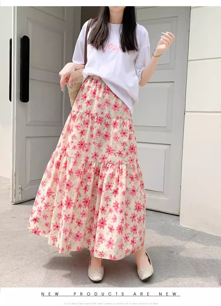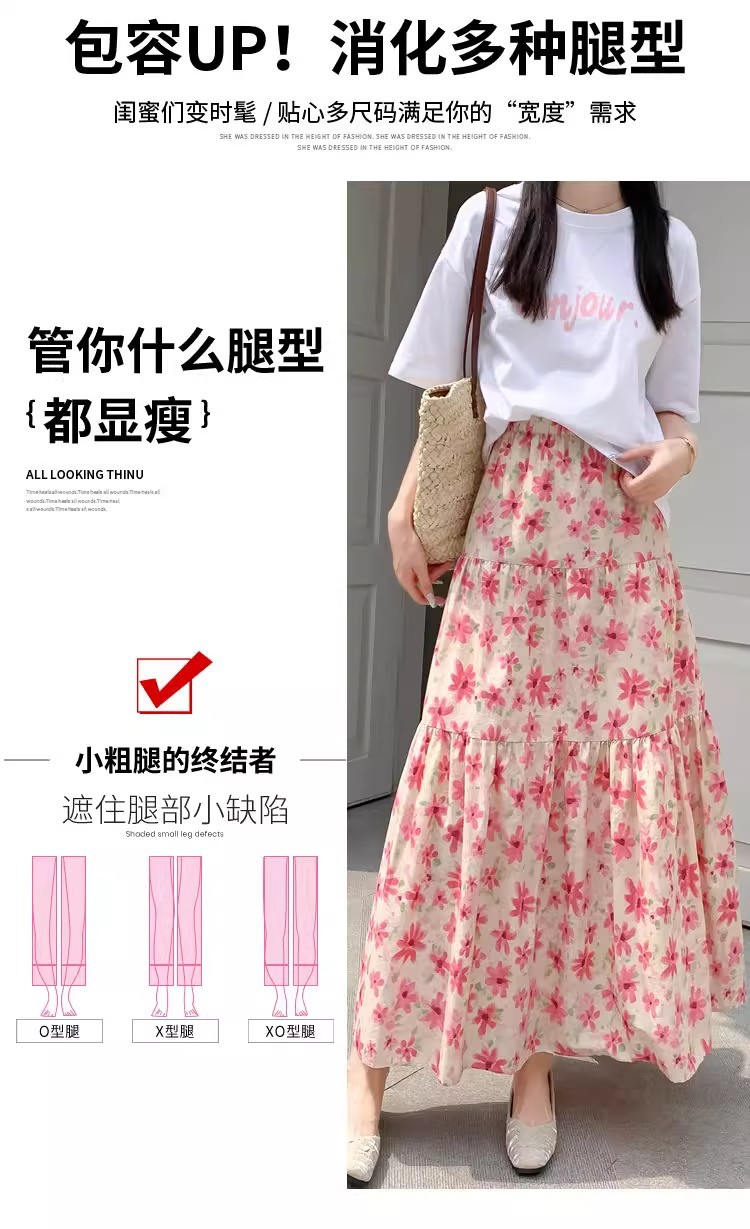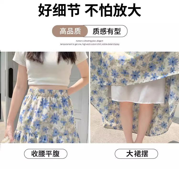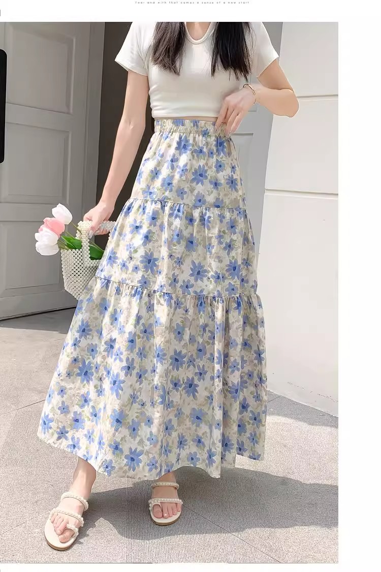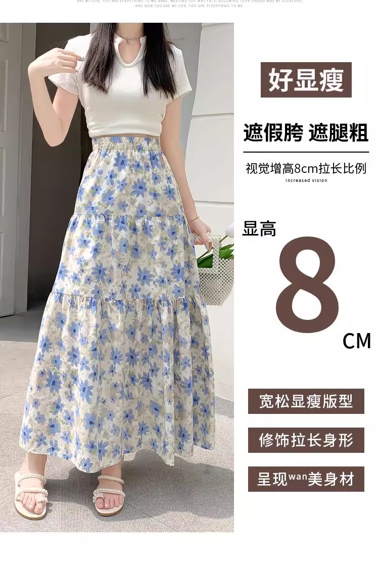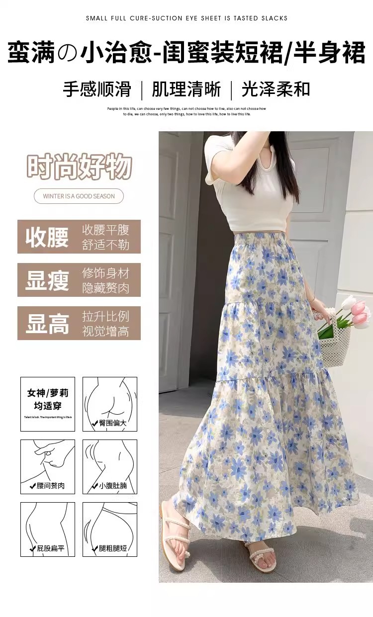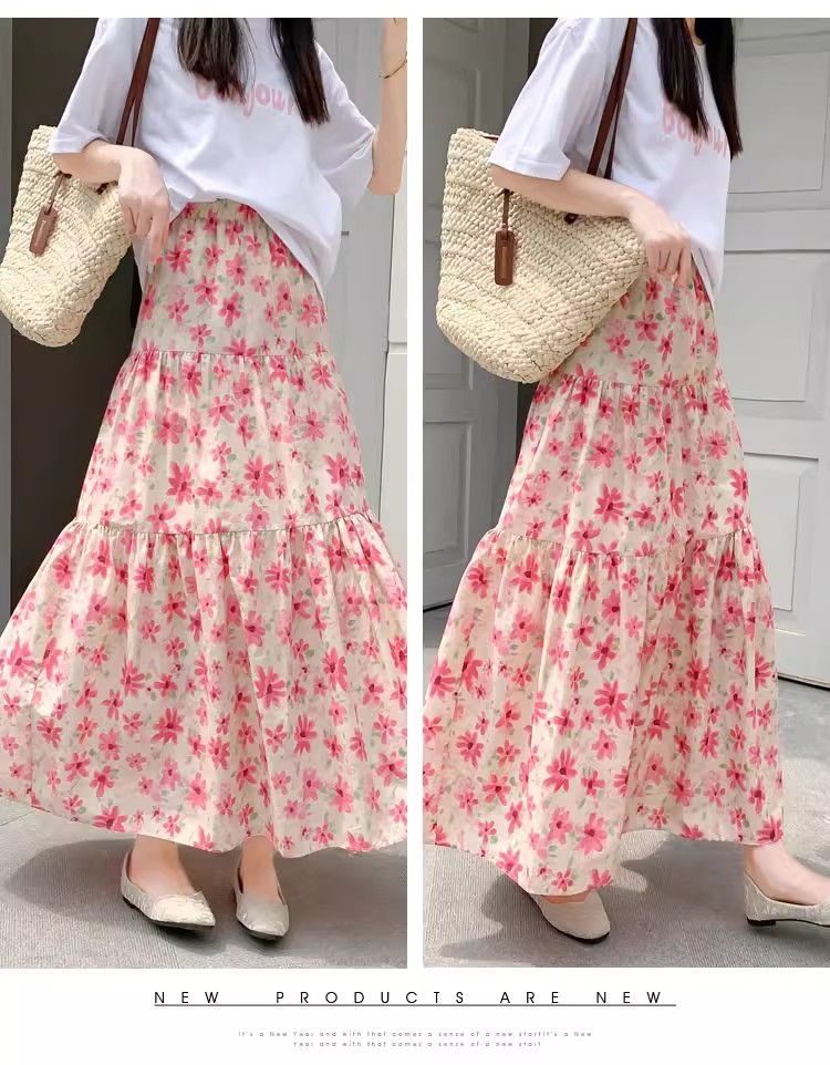 2025 하이 웨이스트 슬림 꽃 무늬 스커트 여름 얇은 신축성있는 허리 중간 길이 일본식 주름 스커트 여성용스토어 가기