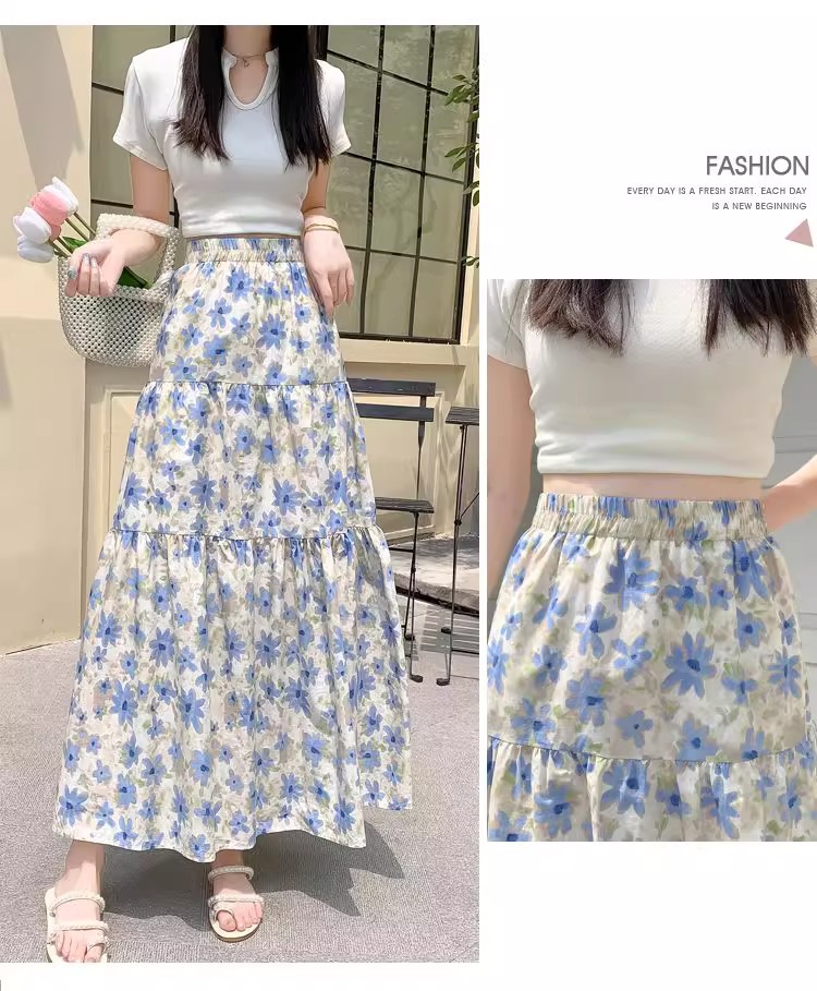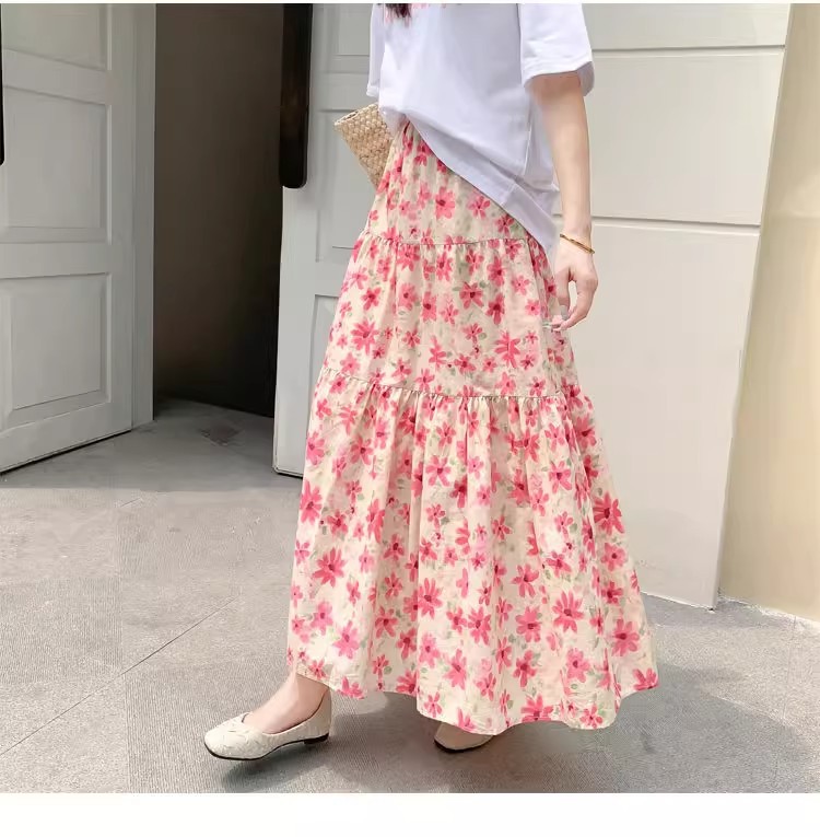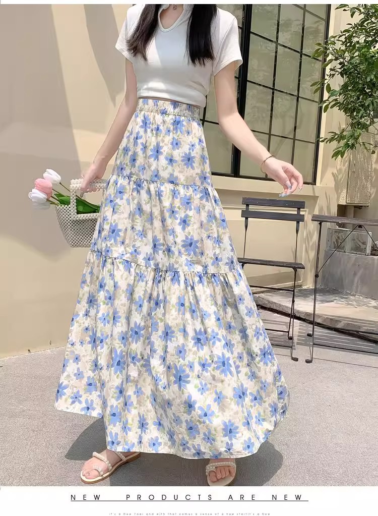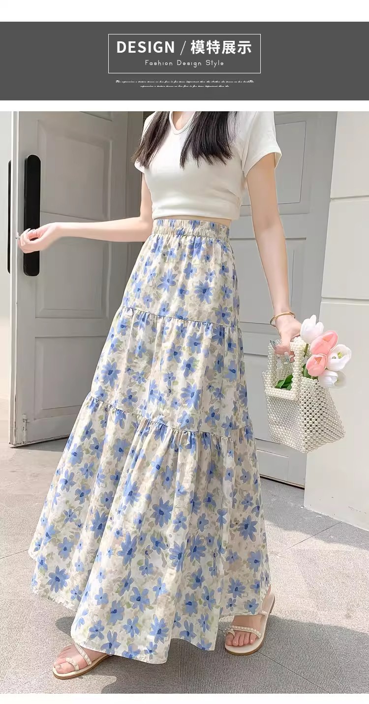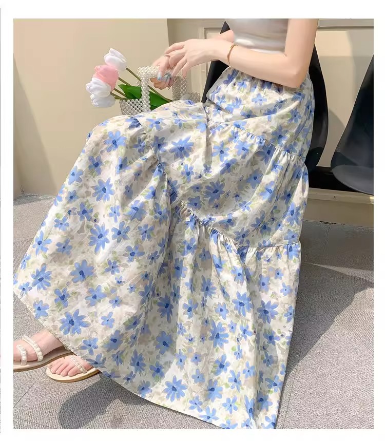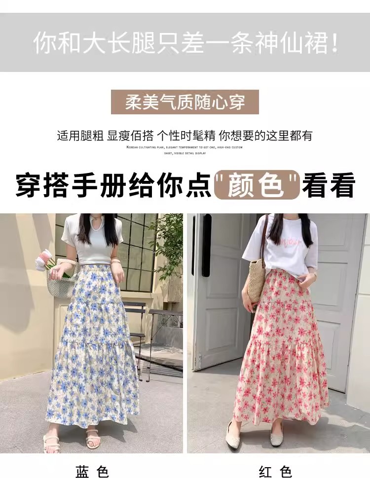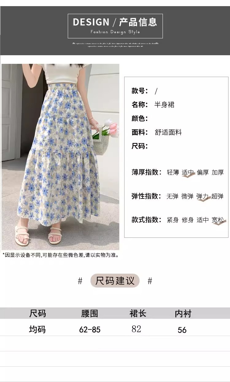 2025 하이 웨이스트 슬림 꽃 무늬 스커트 여름 얇은 신축성있는 허리 중간 길이 일본식 주름 스커트 여성용스토어 가기