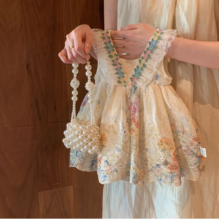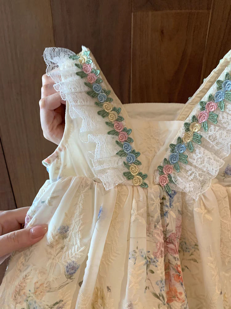 여자 드레스 여름 새 스타일 아기 소녀 프랑스 꽃 서스펜더 드레스 어린 소녀 섬 휴가 스타일 공주 드레스스토어 가기