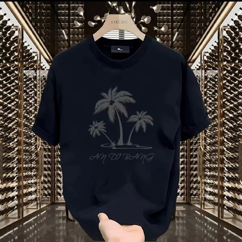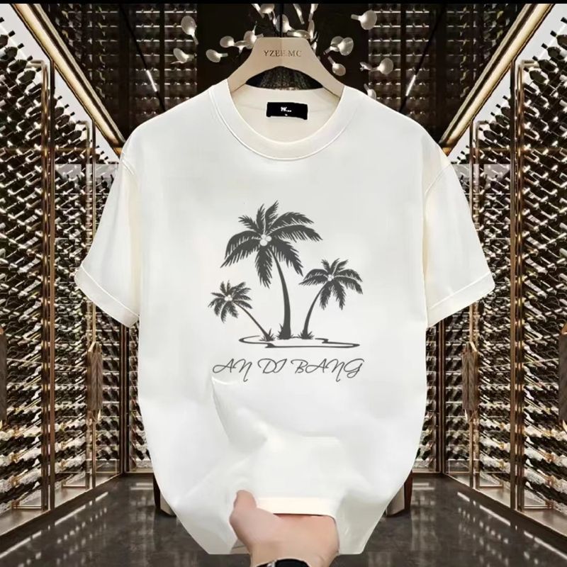 200g 순면 프린트 반팔 티셔츠 여름 미국 패션 브랜드 다재다능한 젊은 남성 라운드 넥 루즈 캐주얼 탑스토어 가기